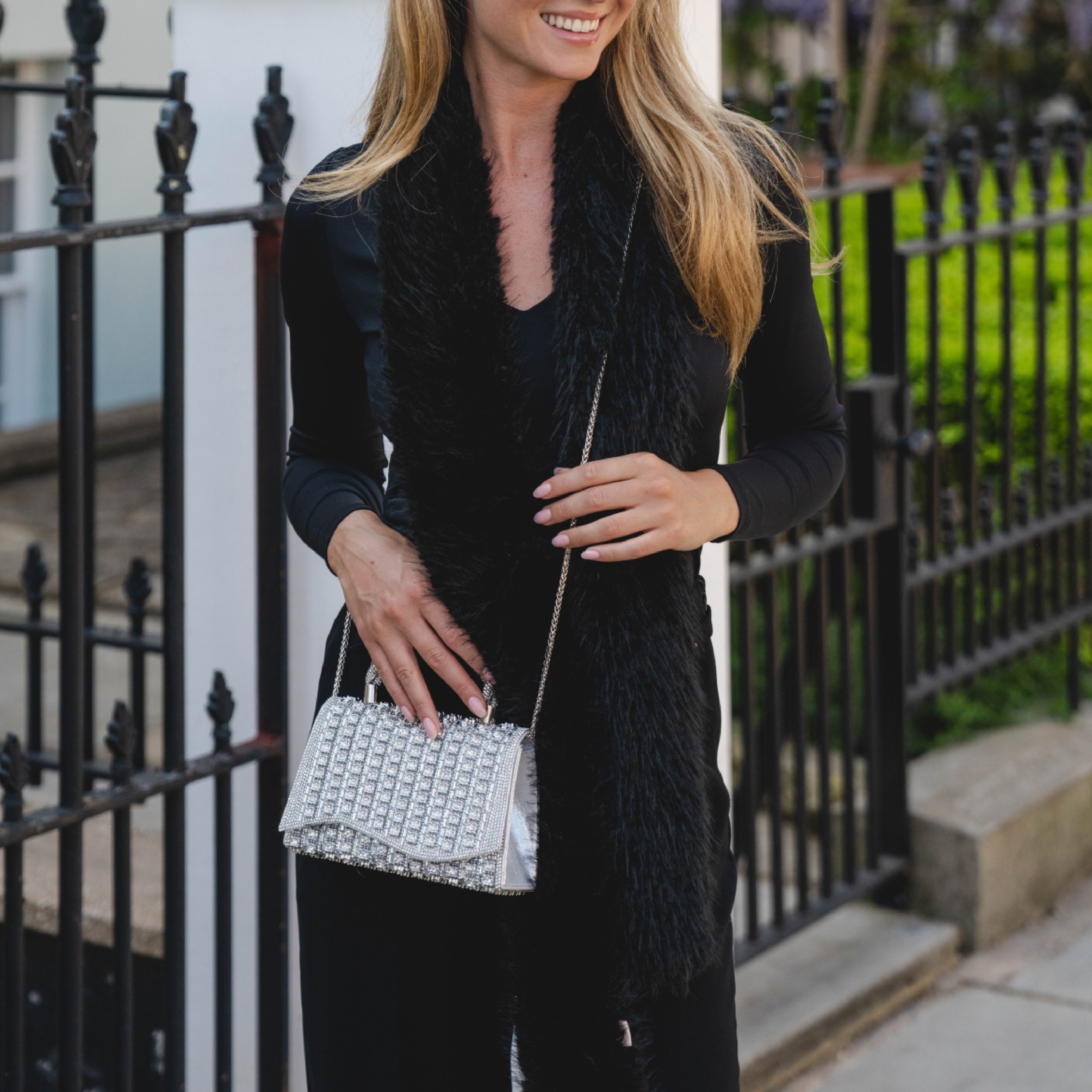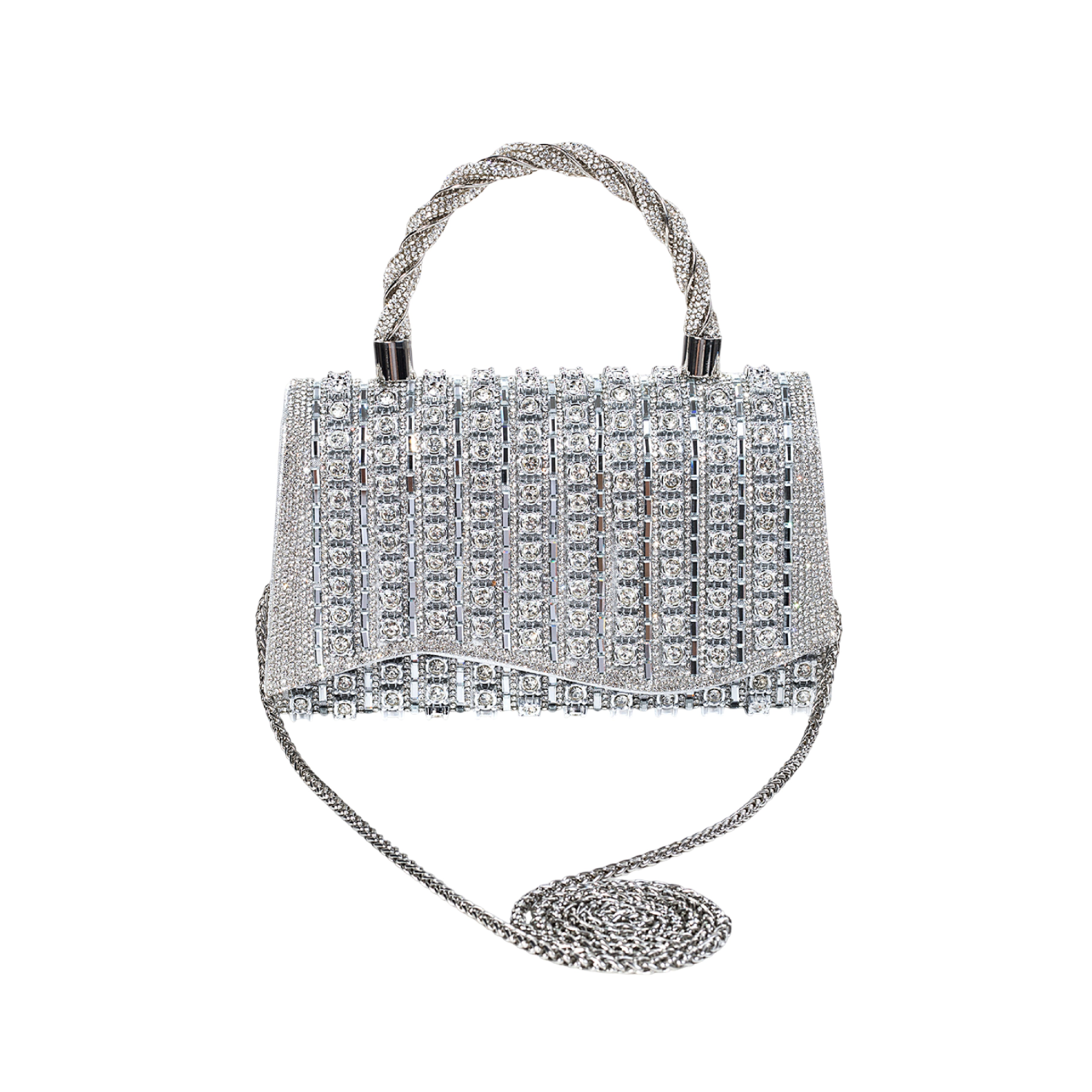 Crystal Side Bag with Chain Strap | Silver