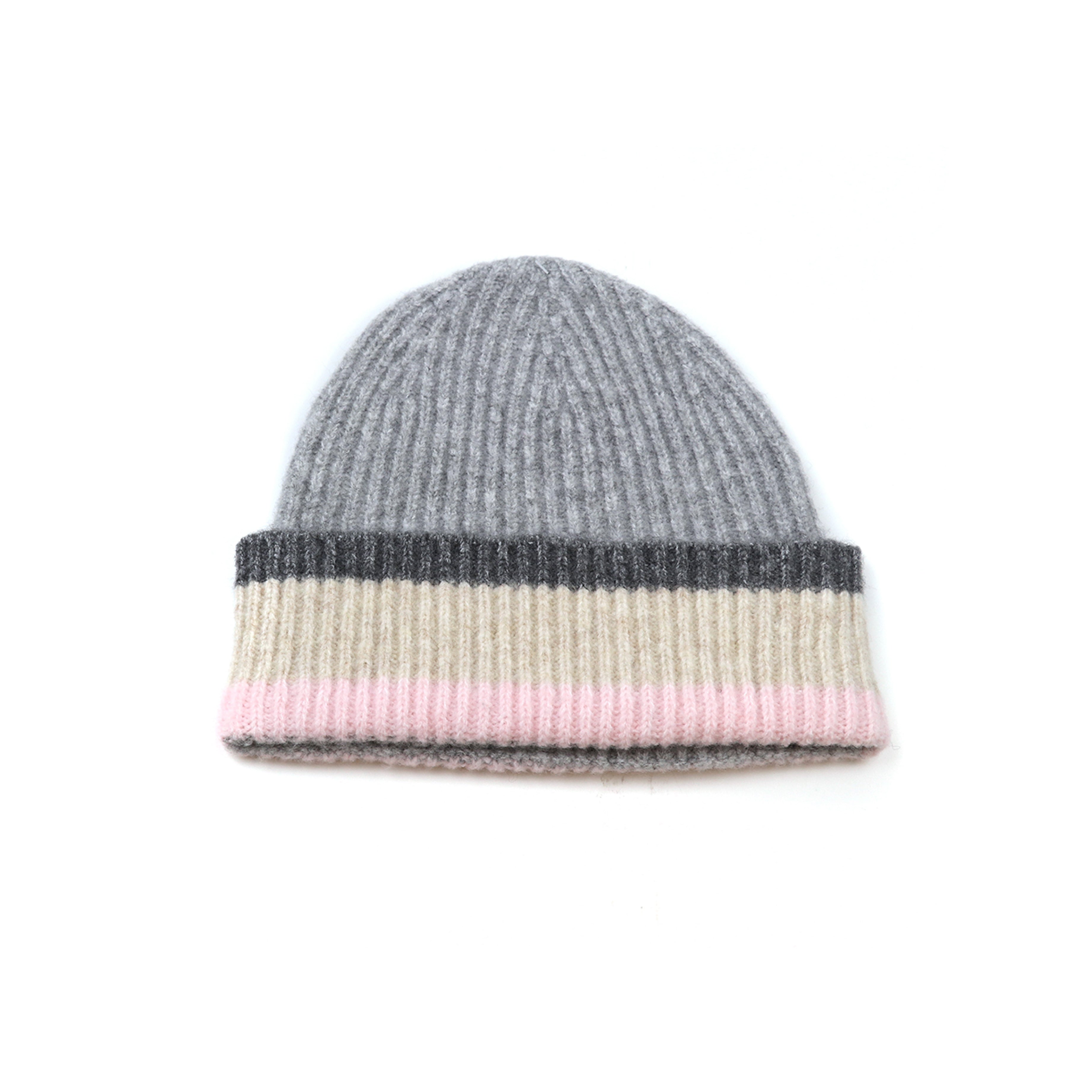 Women's Ribbed Colour Block Beanie Hat | Grey/Pink/Beige