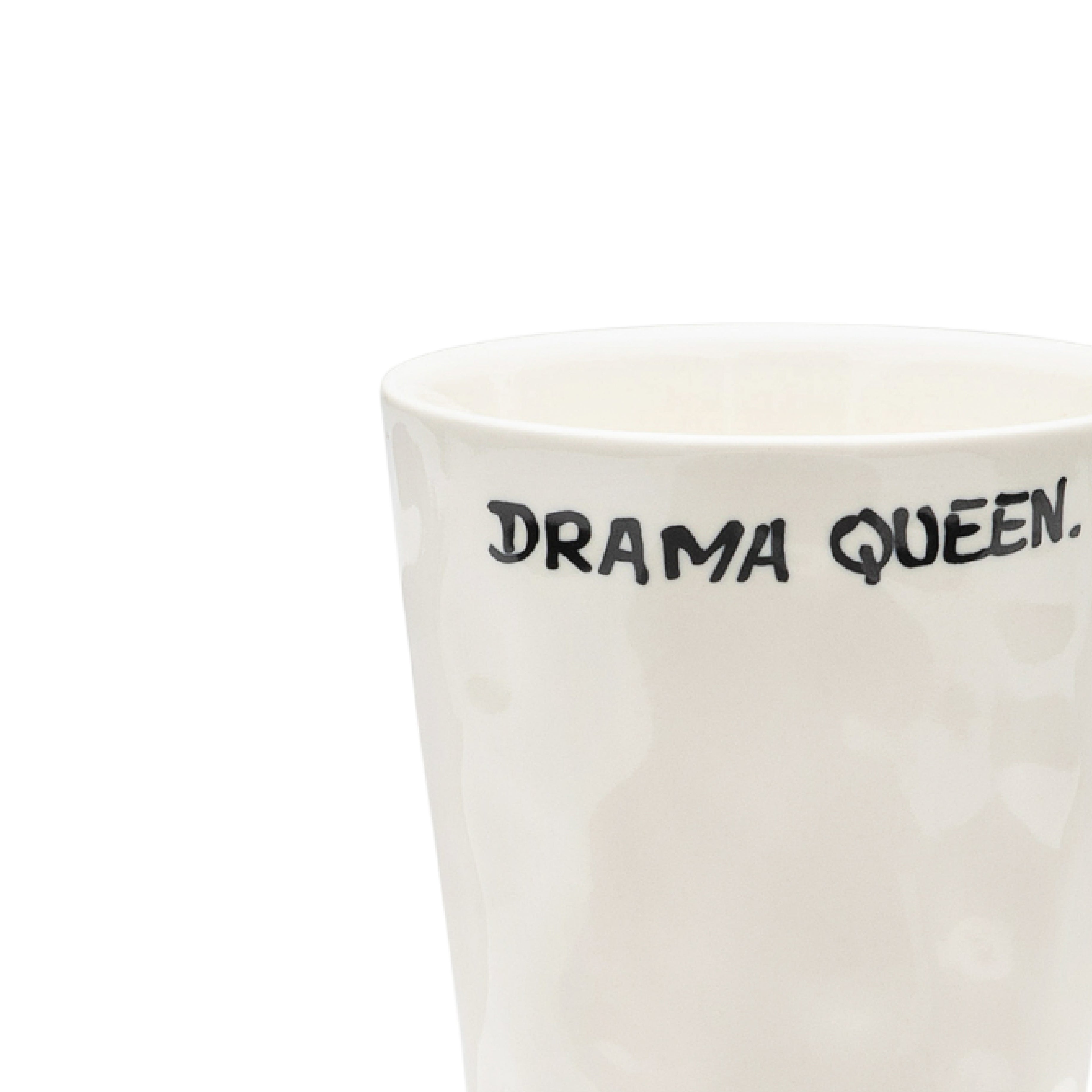 Anna + Nina’s ceramic coffee cup is worth waking for. Coloured white, its body comes organically shaped and boasts quirky imperfections that play curiously in the light. Complete with a hand painted sentiment coloured black on its front - Anna + Nina’s coffee cup is designed for the drama inclined.