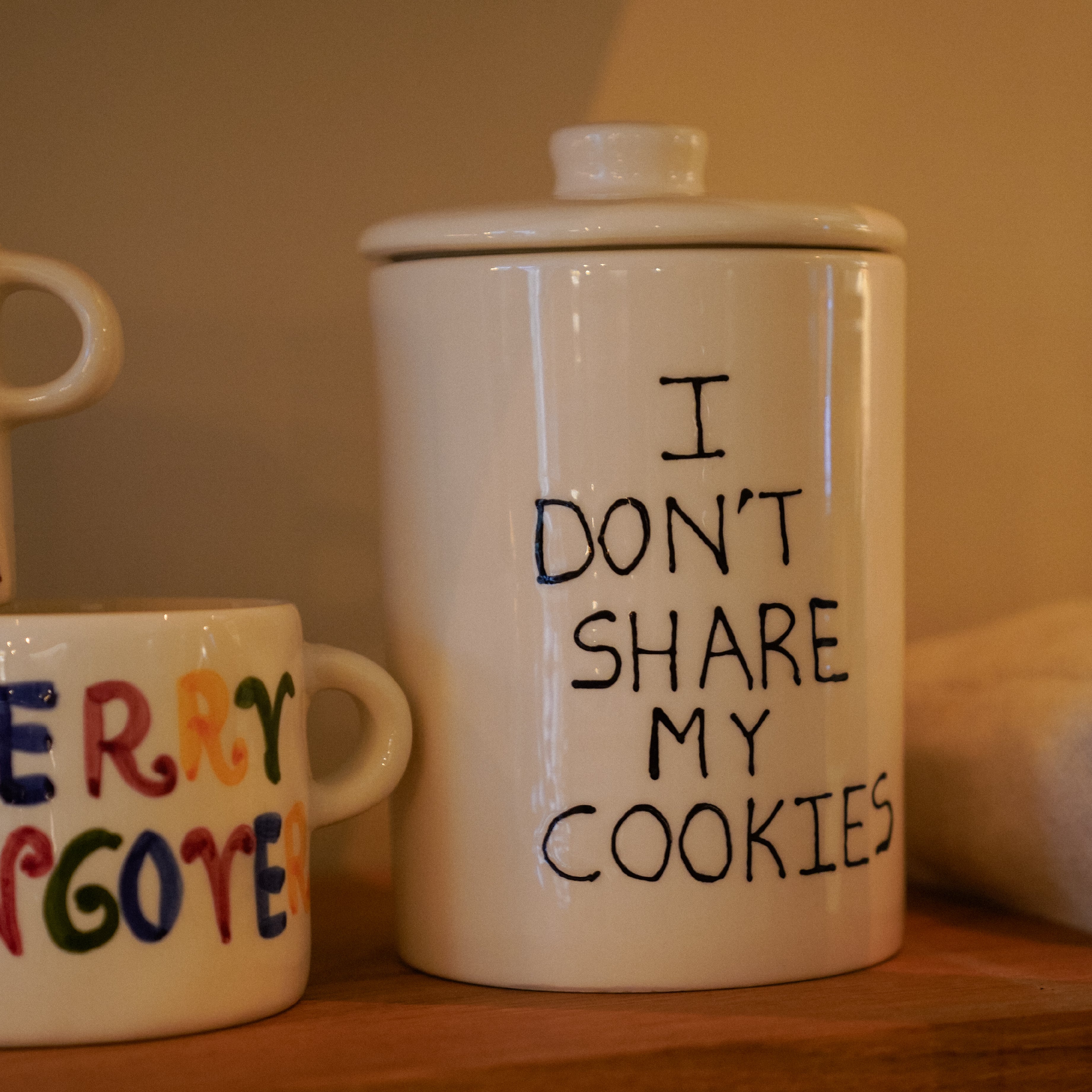 Anna + Nina’s cookie jar isn’t made for sharing. Carefully crafted from earthenware coloured white, it boasts an irreverent hand painted sentiment on its front. Complete with a chic gloss finish - all that’s missing is something sweet.