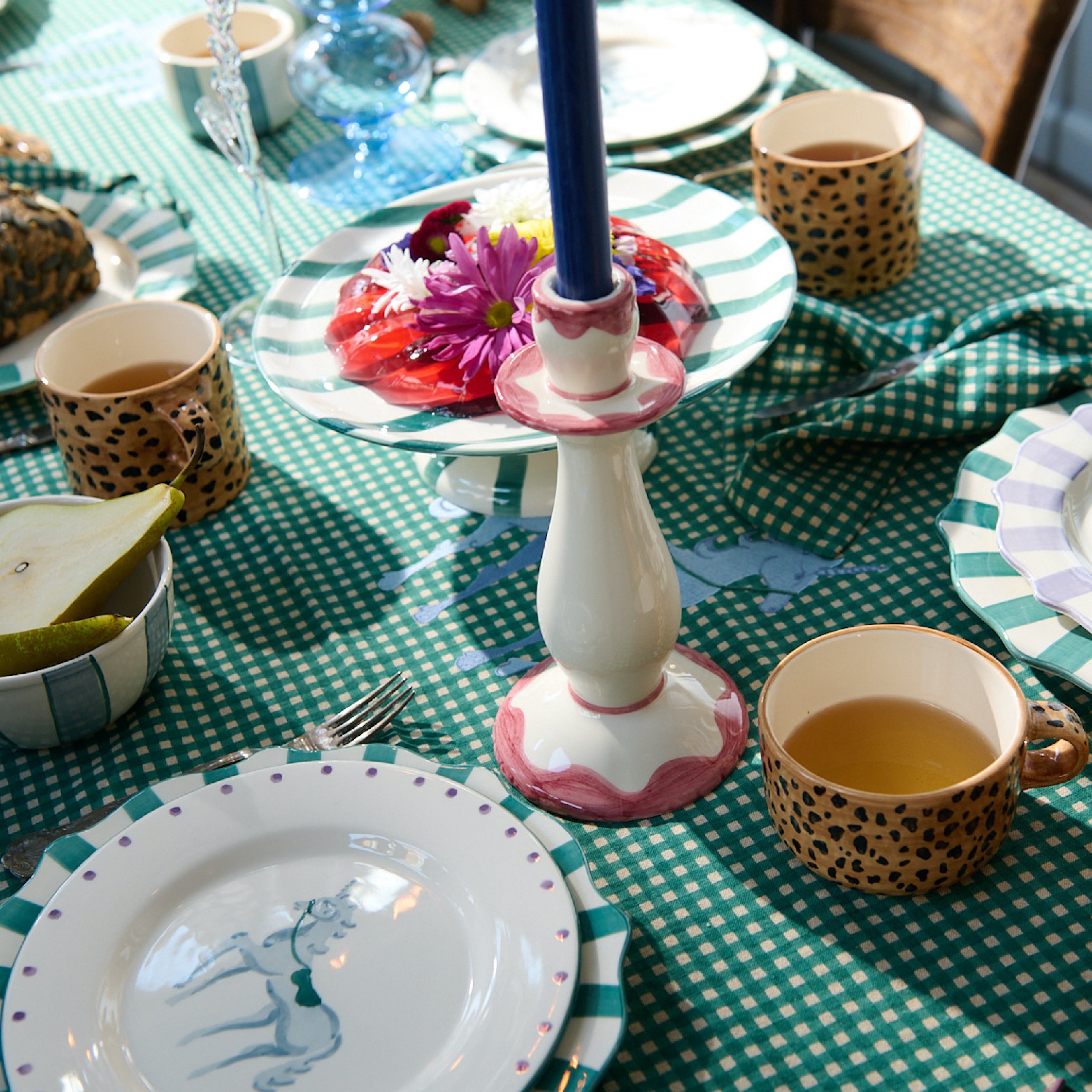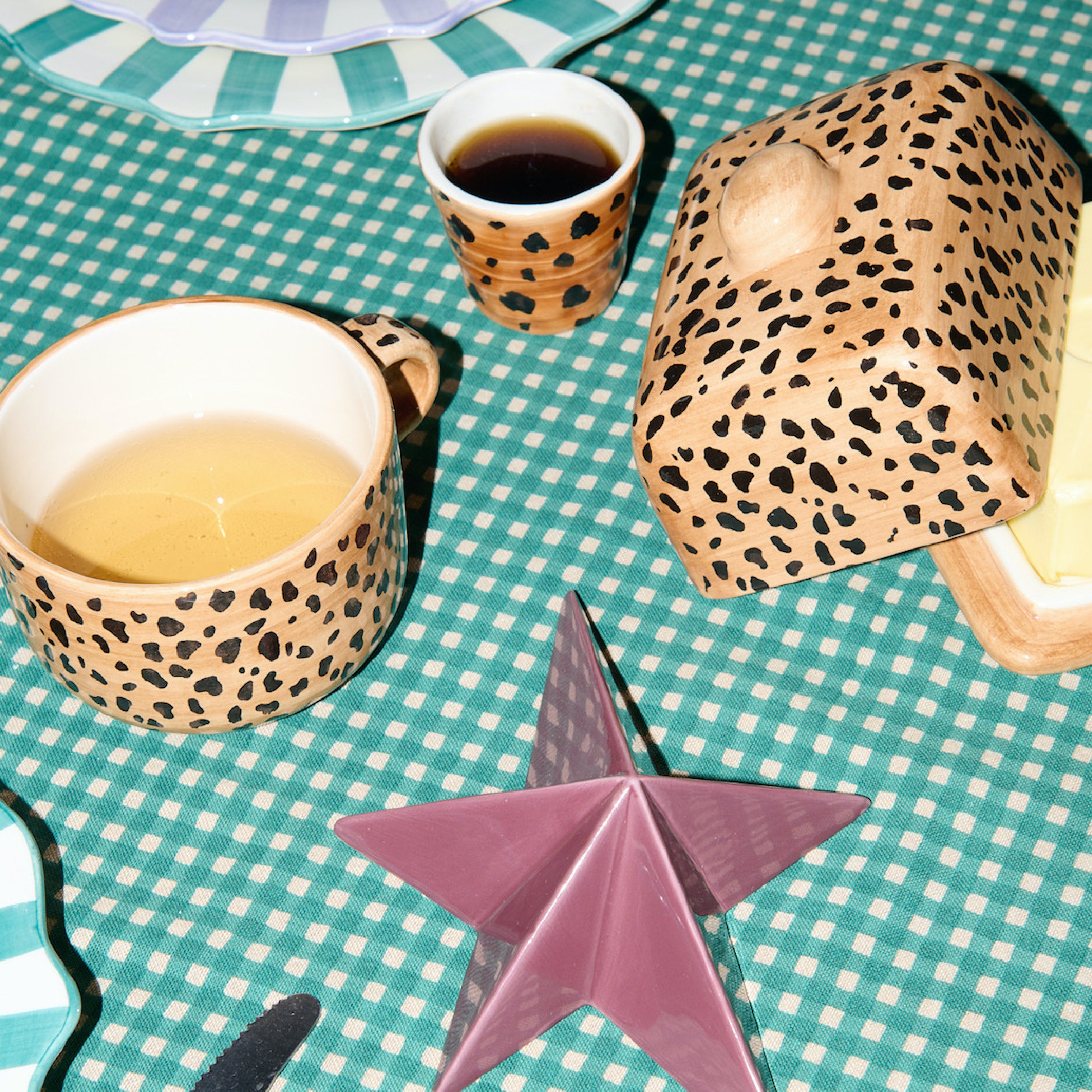 Anna + Nina’s cappuccino mug celebrates the wild side. Crafted from ceramic, it boasts a bold hand-painted leopard print motif on its exterior, and features a minimal white interior. Complete with an organically shaped body and a curiously small handle to one side - Anna + Nina’s cappuccino mug is maximal by design.