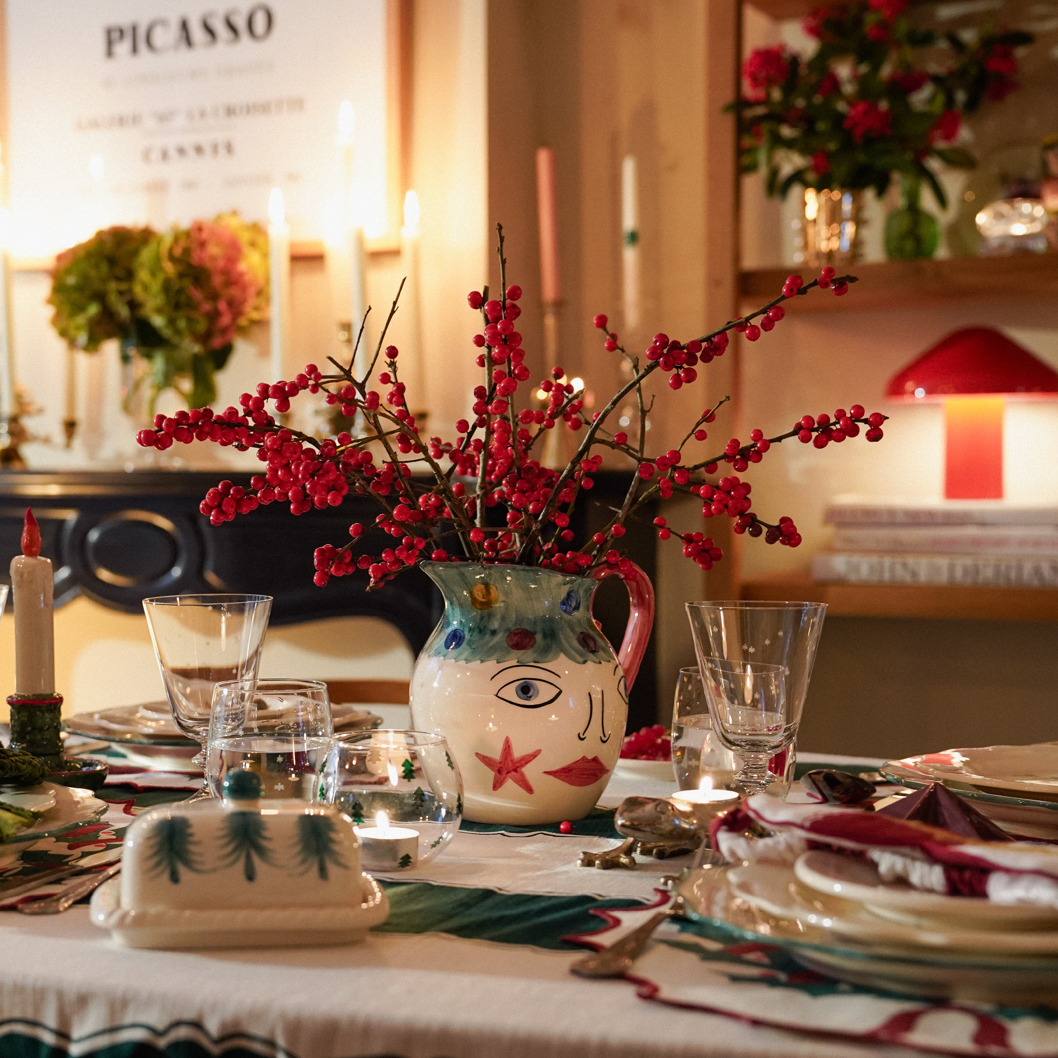 Anna + Nina’s jug of the Miss Christmas Collection is designed to draw eyes. Carefully crafted from stoneware, it comes hand painted with a quirky Christmas-inspired caricature - look closer and marvel at her star-blushed cheeks and bauble adorned hair. Complete with a chic gloss finish; gravy not included.