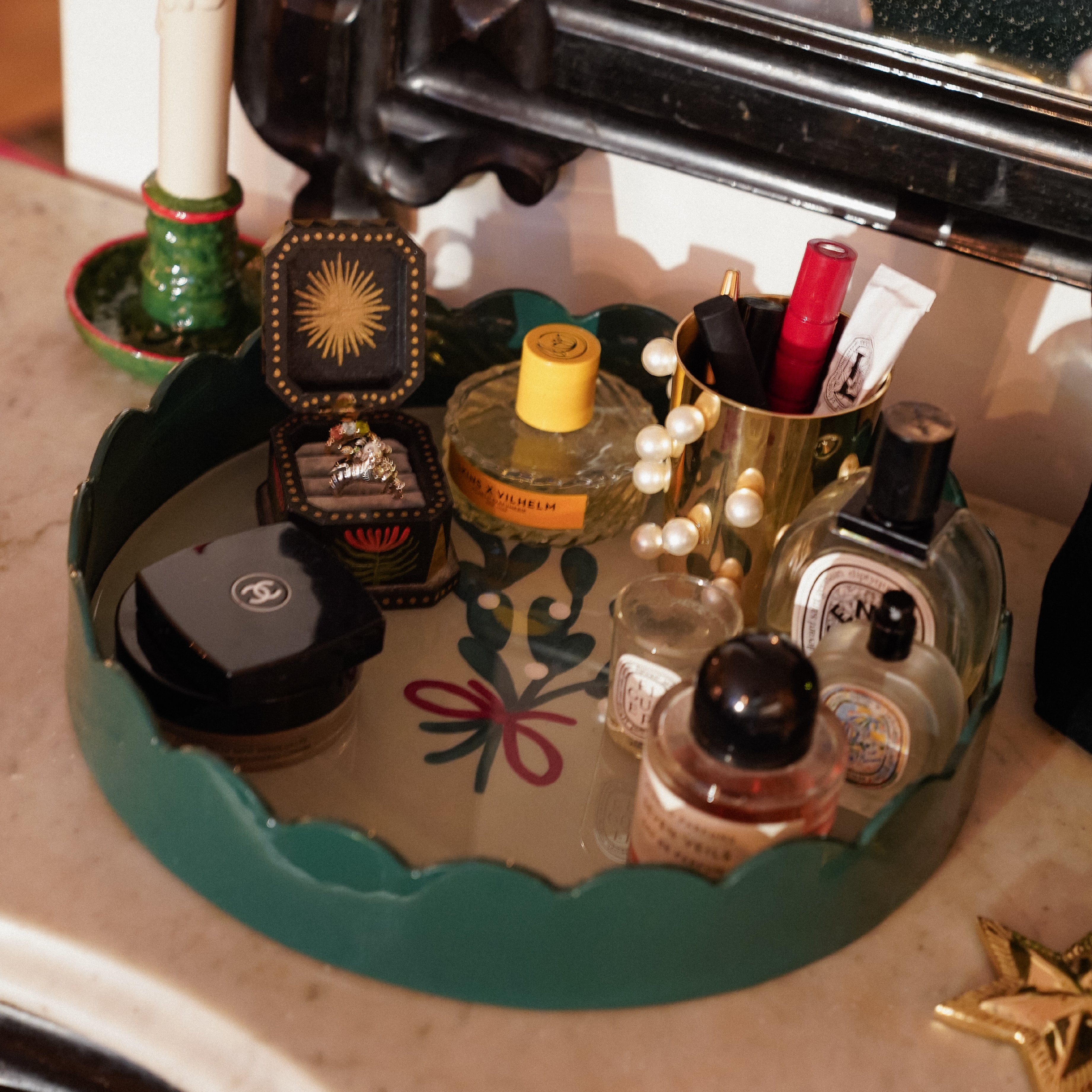 Anna + Nina’s tray serves Christmas. Coloured in shades of green, it features hand painted mistletoe tied with a brilliant red bow at its centre. Complete with chic scalloped edges and a beautiful gloss finish - Anna + Nina’s serving tray is the go-to barware accessory for budding hosts come party season.