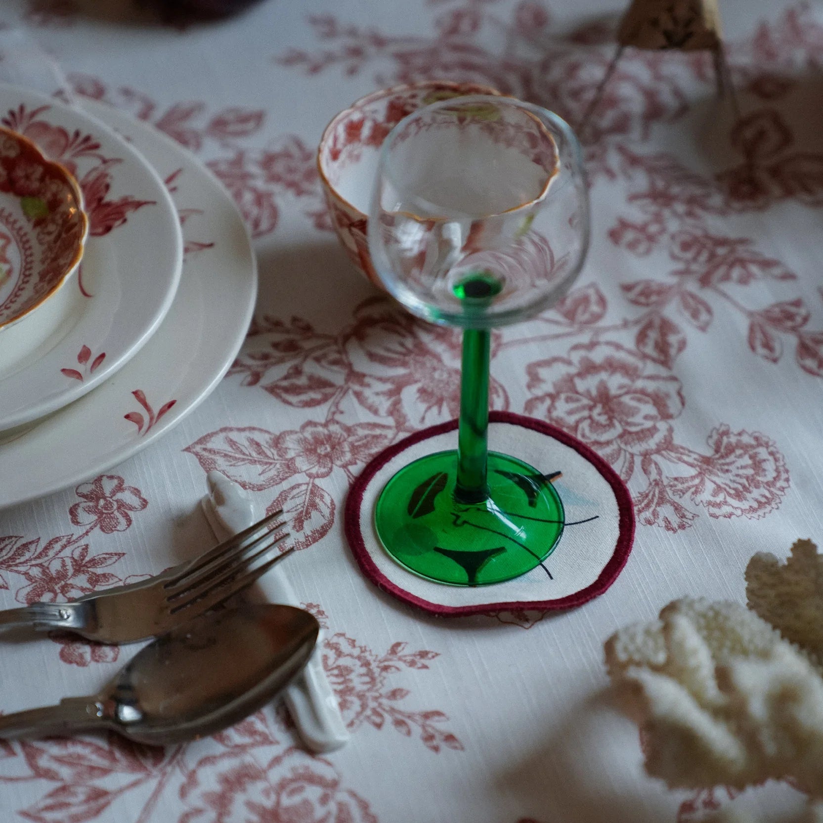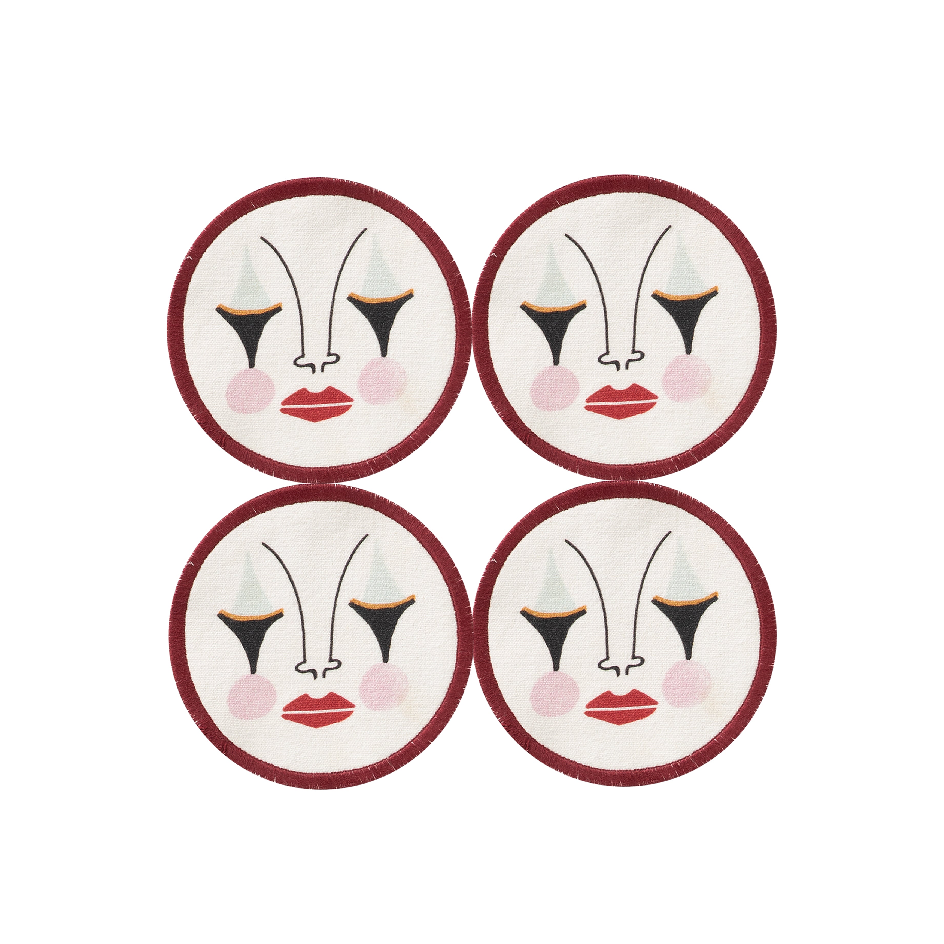 Transform your tablescape with Anna + Nina’s quirky coaster set. Crafted from 100% cotton, each of their four feature circular silhouettes with clown motifs at their centres. Complete with brilliant red rims - Anna + Nina’s coasters are the go-to for maximalist interiors.