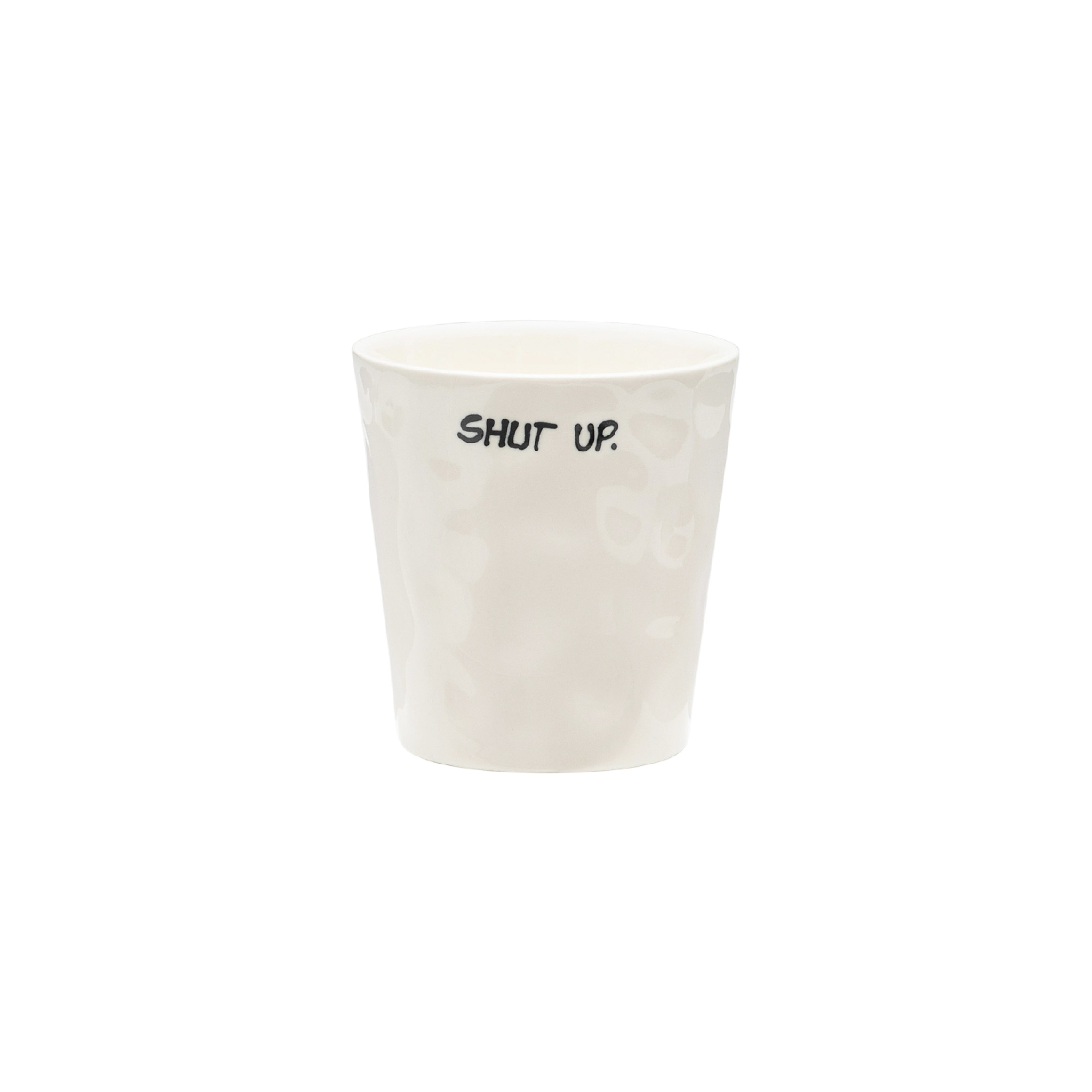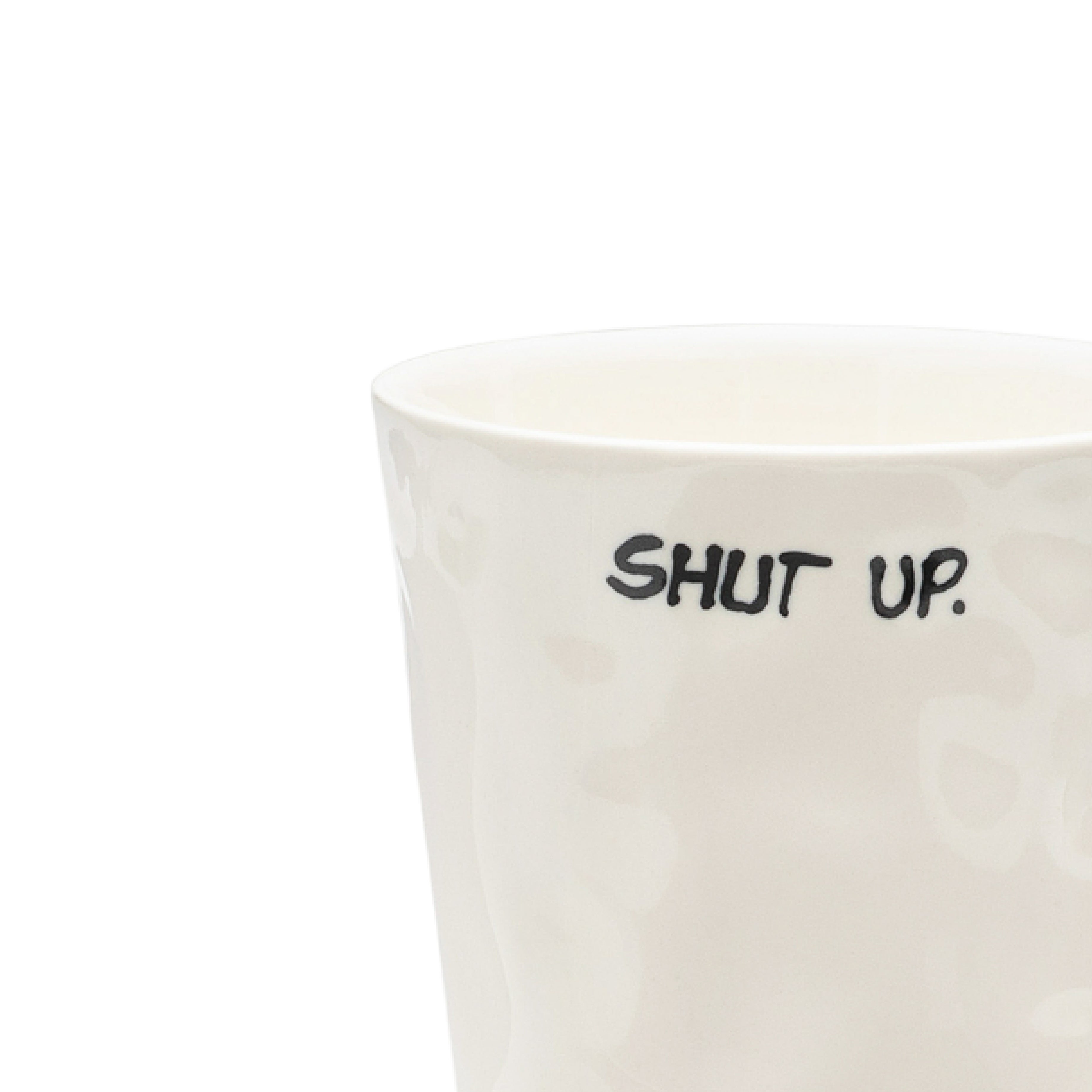 Anna + Nina’s ceramic coffee cup doesn’t mince its words. Coloured white, its body comes organically shaped with quirky imperfections that play curiously in the light. Complete with a hand painted sentiment coloured black on its front - Anna + Nina’s coffee cup is double-take worthy by design.