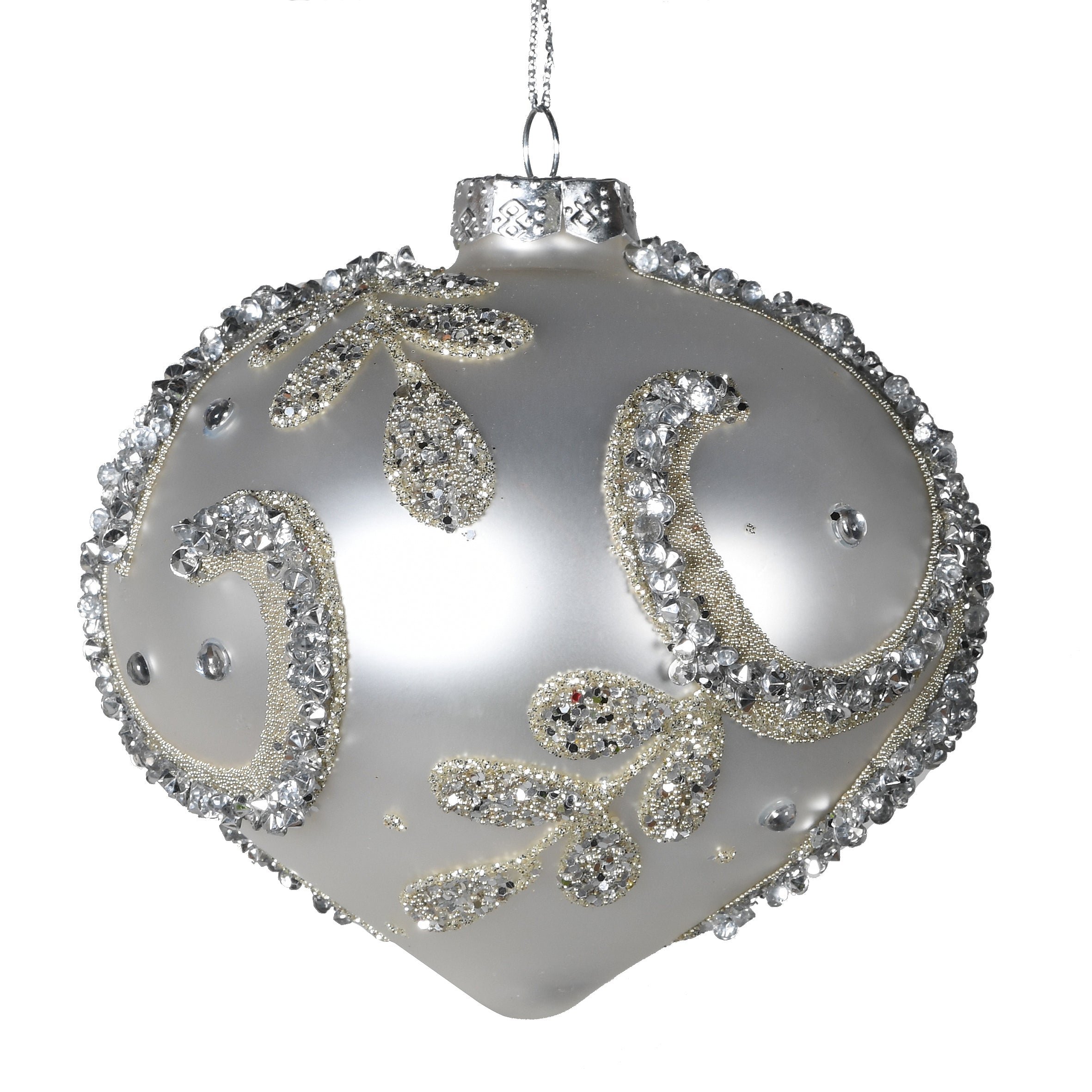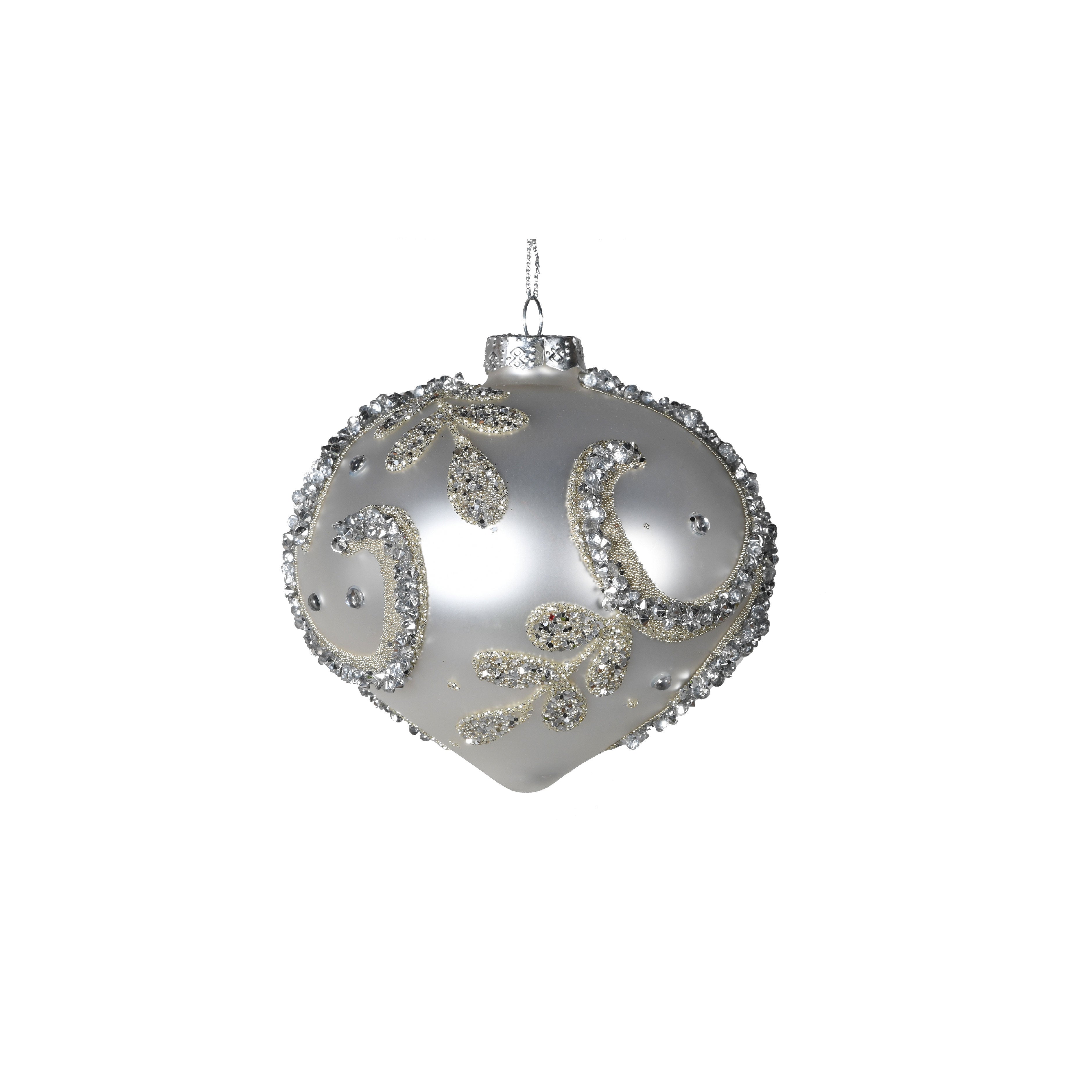 For decor designed to rival the Christmas tree, choose our brilliant onion bauble. Threaded with silver string, it features an oval body coloured matt silver and adorned in luxe beads for good measure. Simply hang on tree - or style in any space - and marvel as its contours reflect in the twinkling light.
