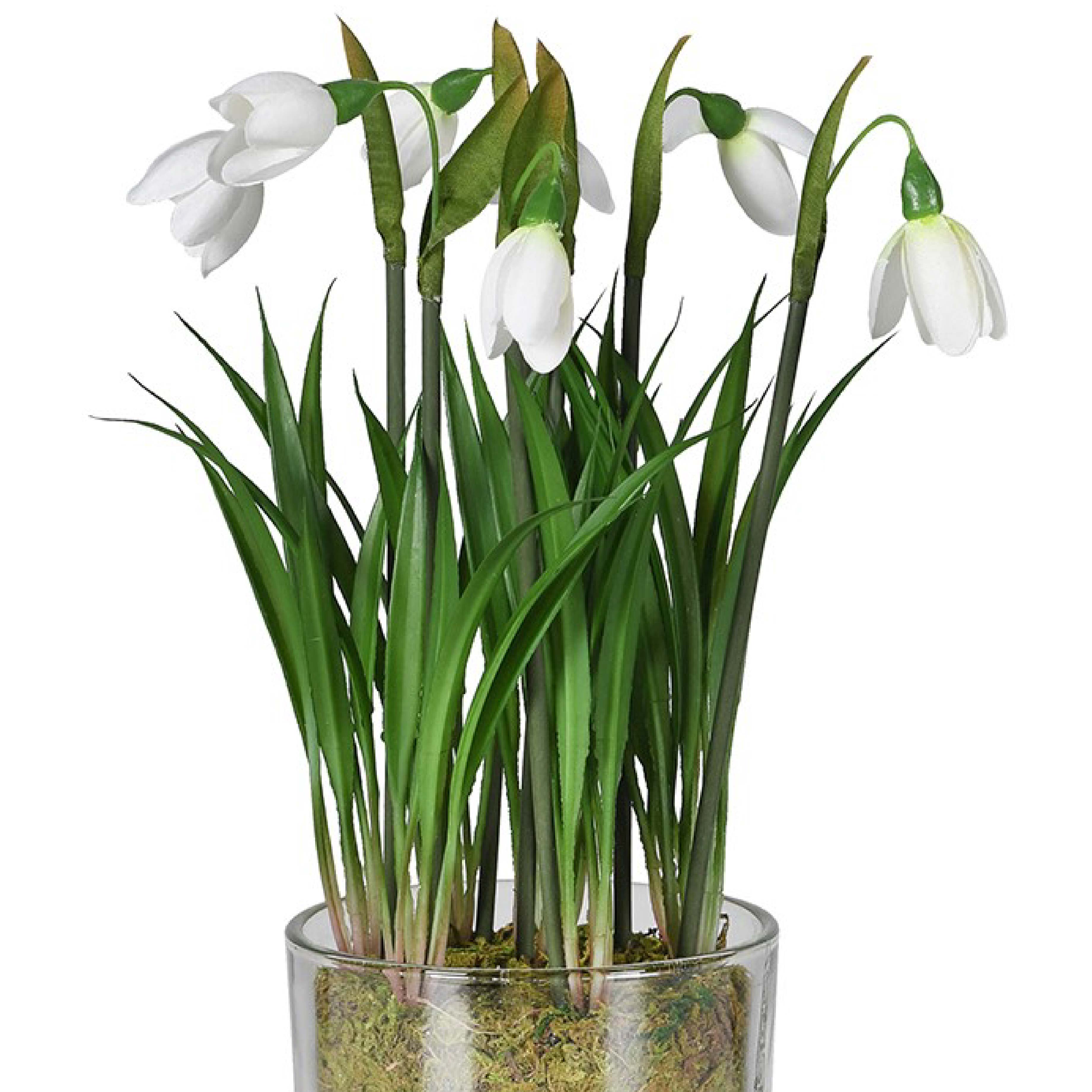 Faux Snowdrop Plant in Glass Pot | 26cm
