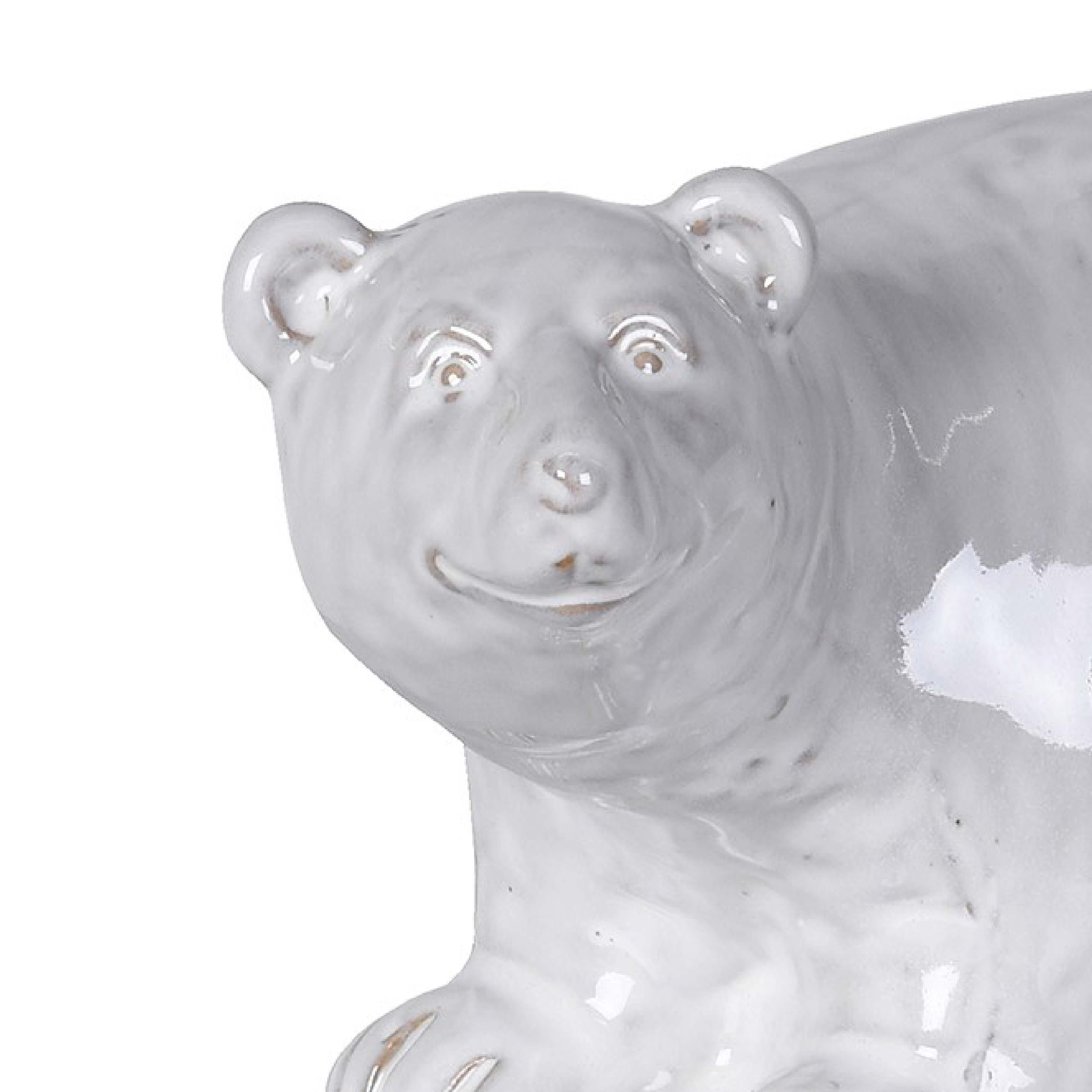 Add winter-inspired accent to otherwise everyday interiors with our antique-style polar bear figurine. Carefully crafted in ceramic coloured white, its classic silhouette features rustic details and a high-gloss finish that plays beautifully in the light. Whether displayed by the fireplace, under the tree or table centre - our ceramic decoration makes a statement.