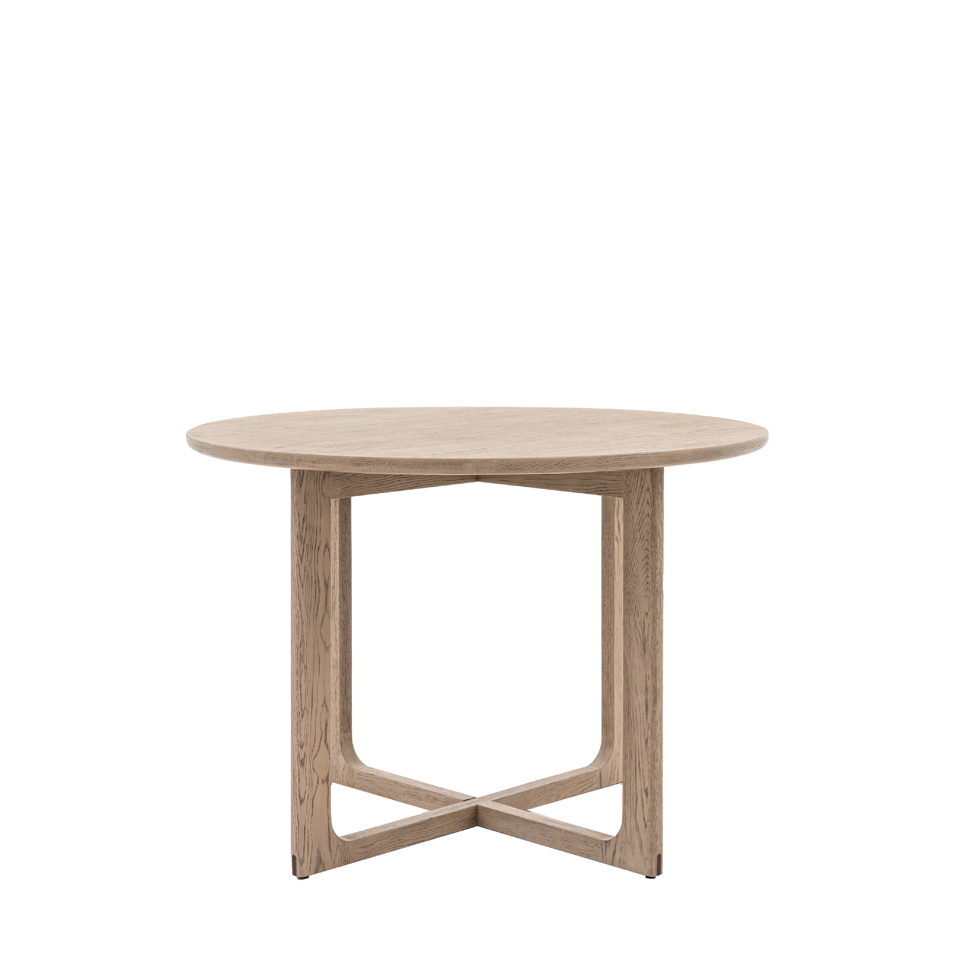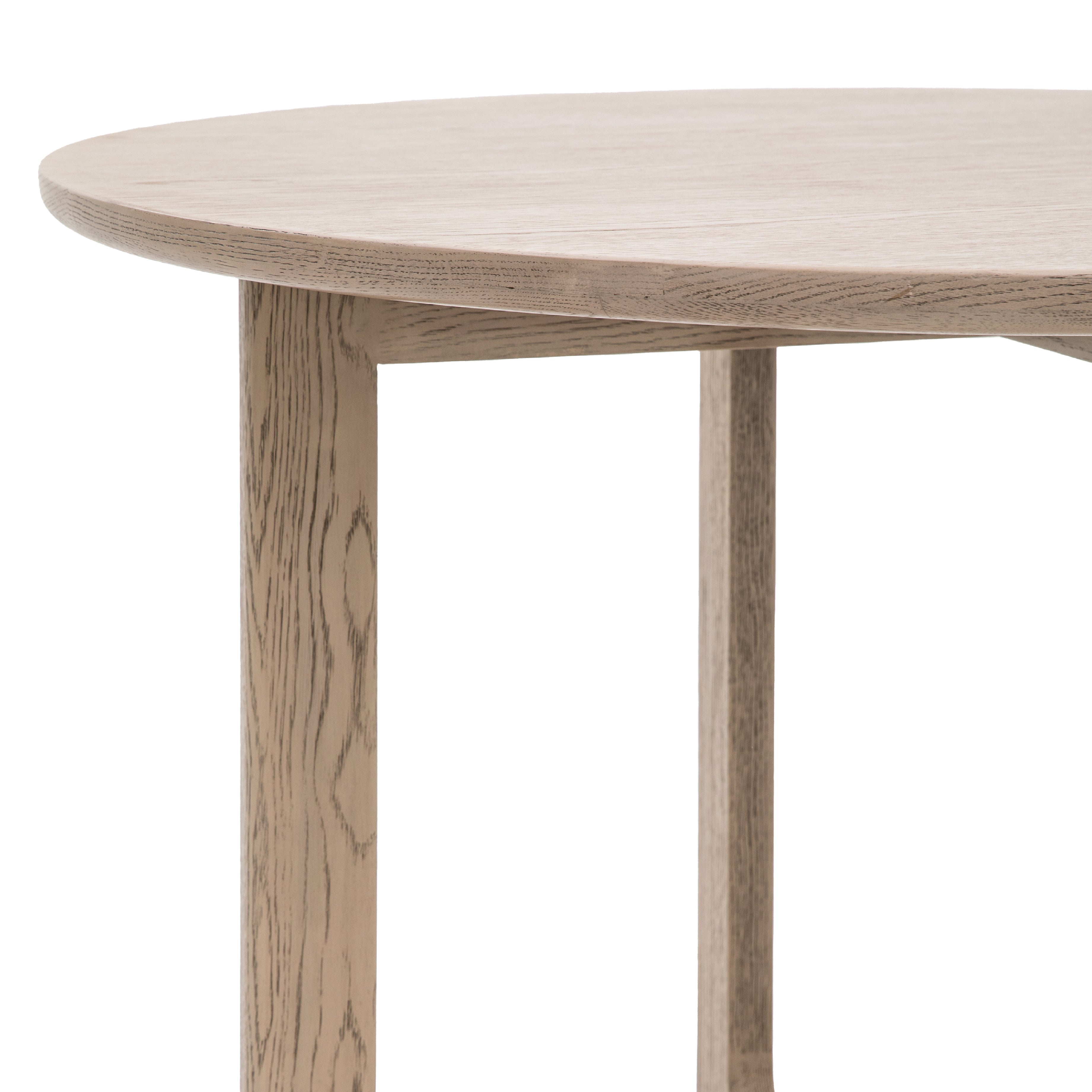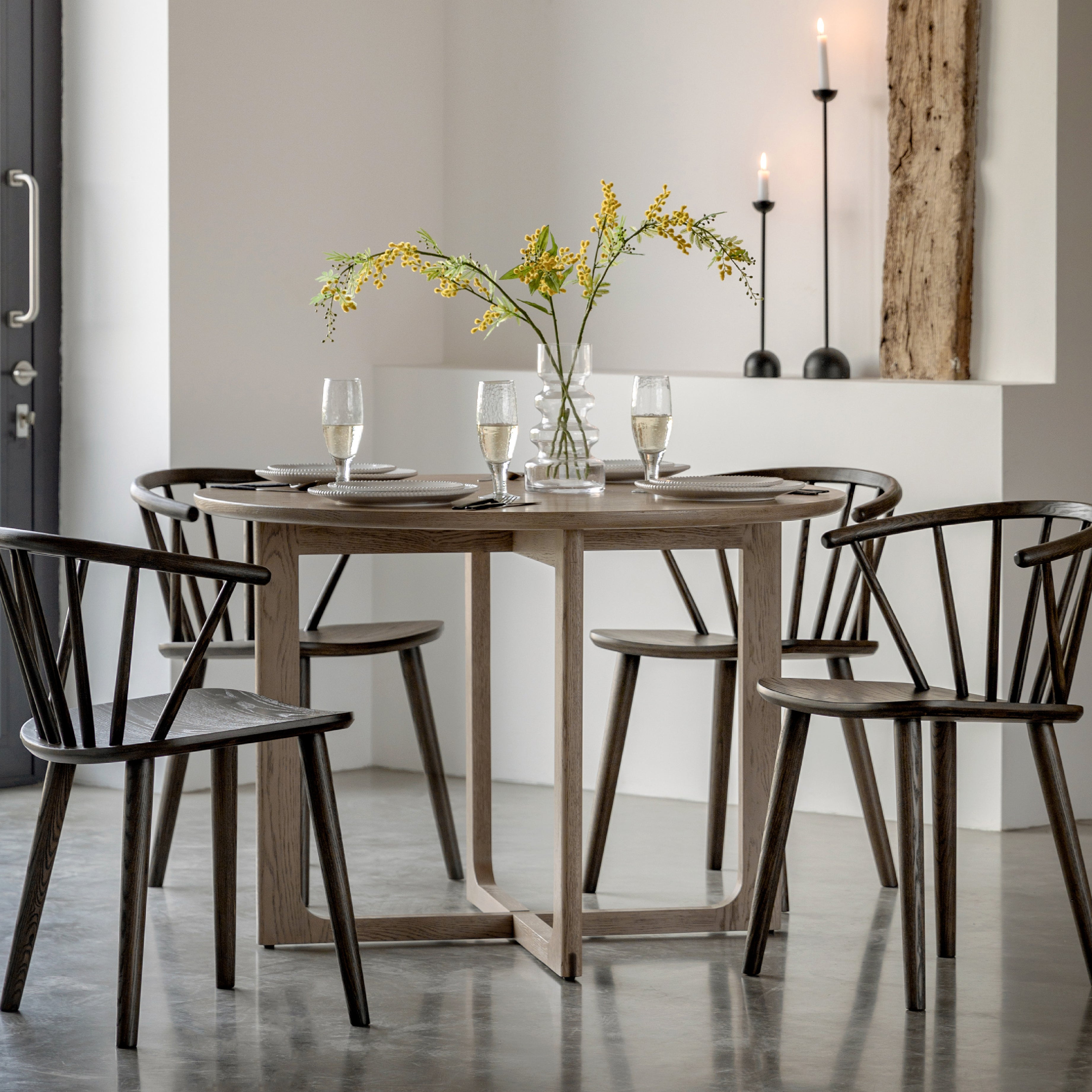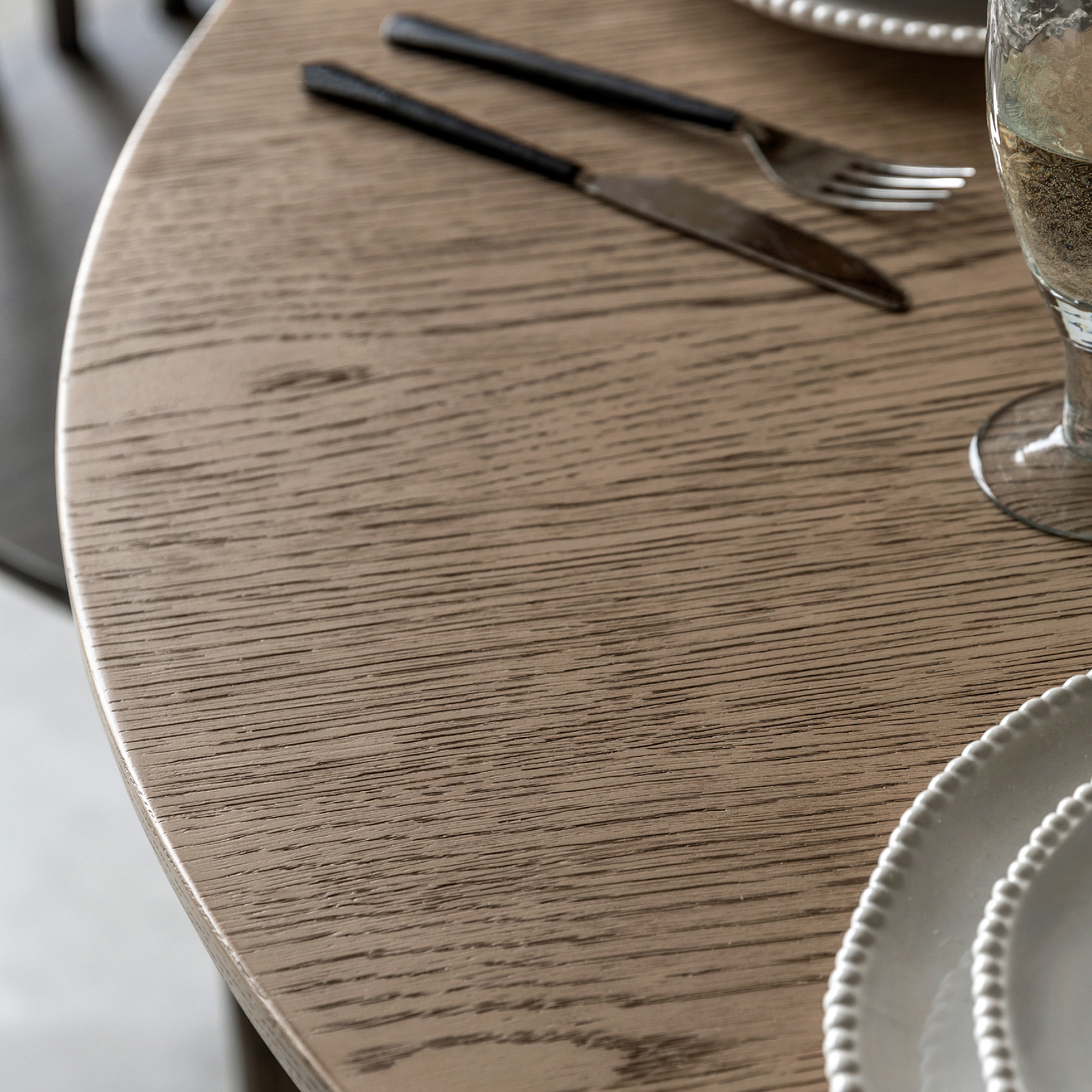 Crafted from the finest oak and structural oak veneers where practical, this stunning dining table pairs perfectly with the matching chairs. The table offers elegant design, with its simple round top and beautifully shaped underframe. The wood has a smoked oak finish.