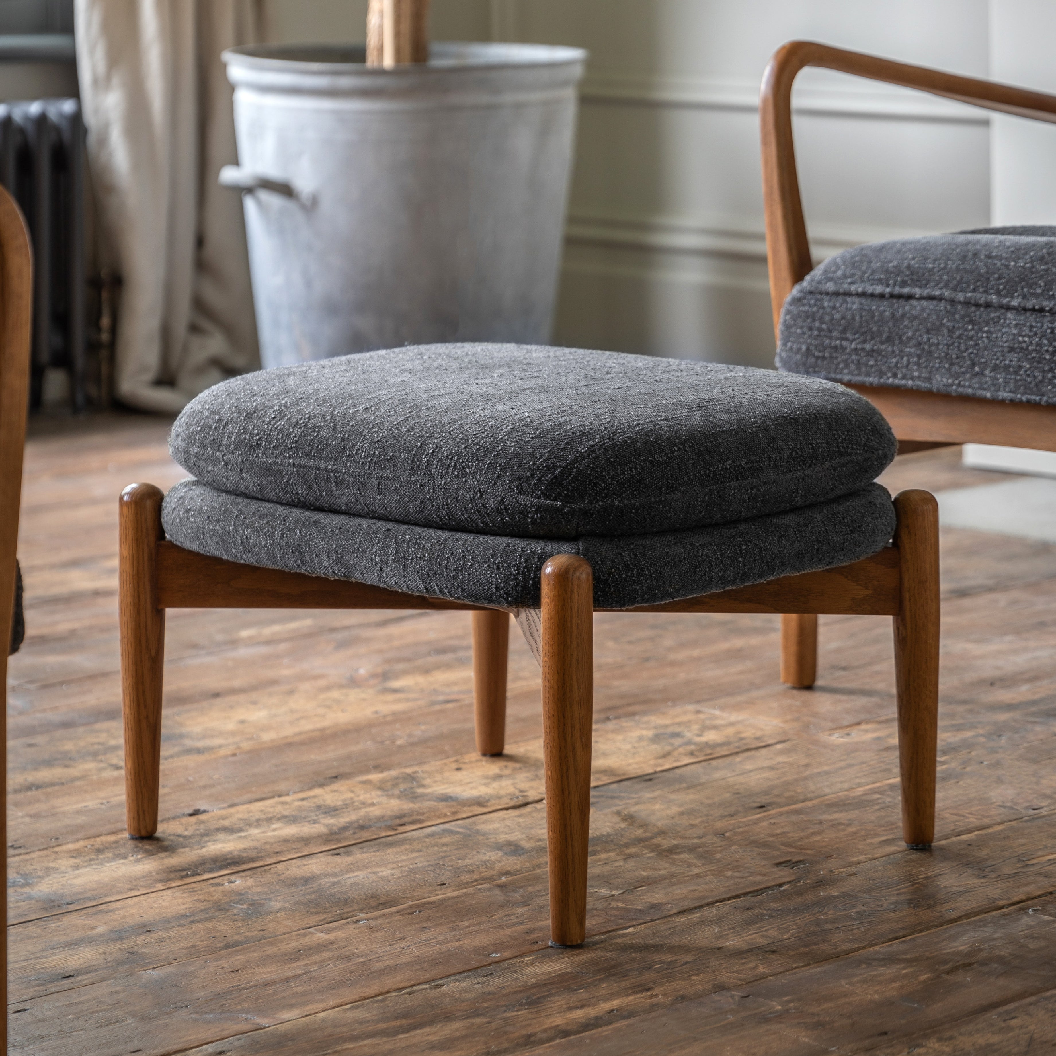 With its compact design and plush cushioning, this footstool is crafted for ultimate relaxation, allowing you to rest your feet in style. The soft upholstery complements any decor, while its sturdy wooden legs provide both stability and a touch of timeless elegance.