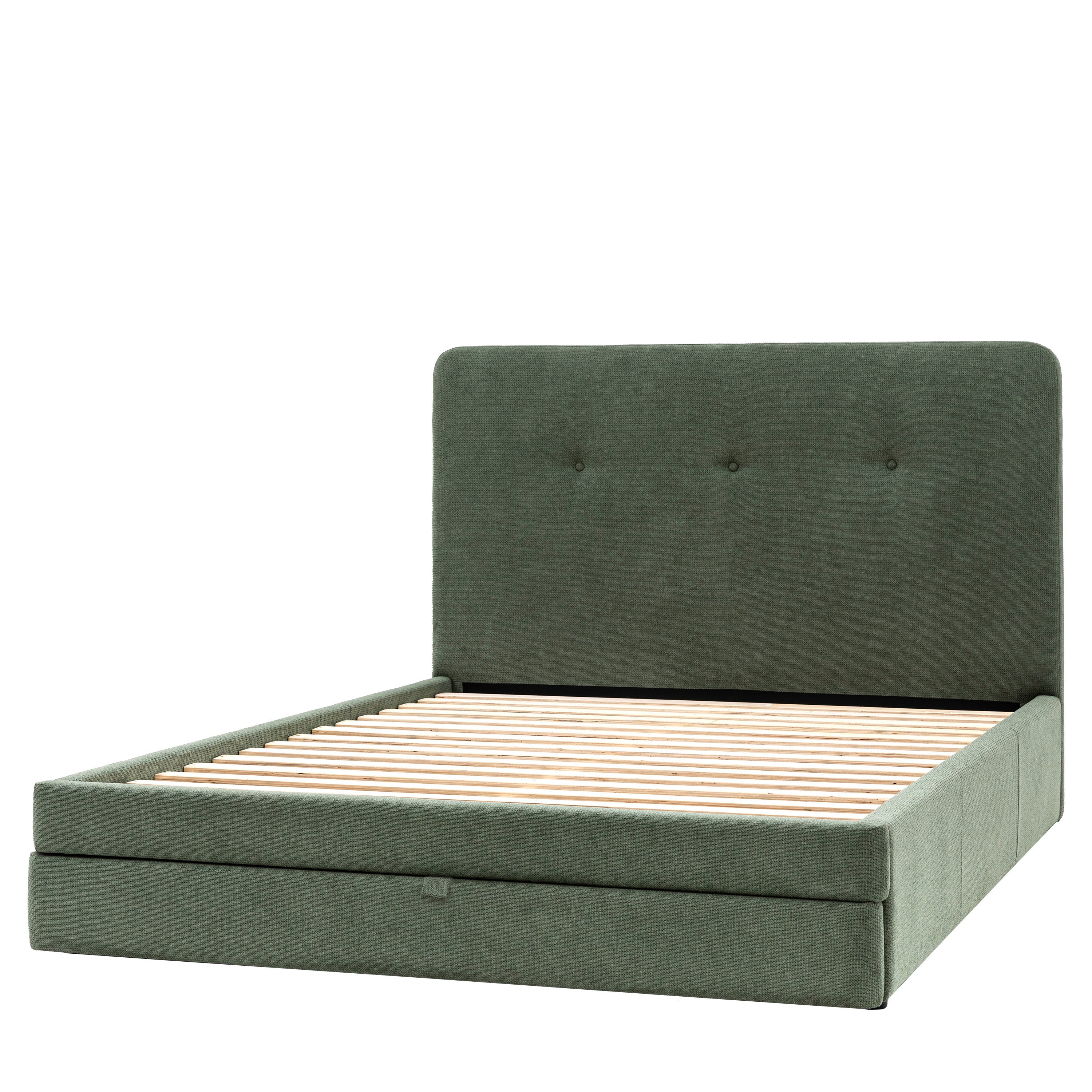 With its simple classy design and lovely green fabric, this beautiful double bedstead would suit a wide range of interiors. The headboard has softly rounded corners and button detailing to give elegant style, and the base features two drawers to give storage space for added practicality.