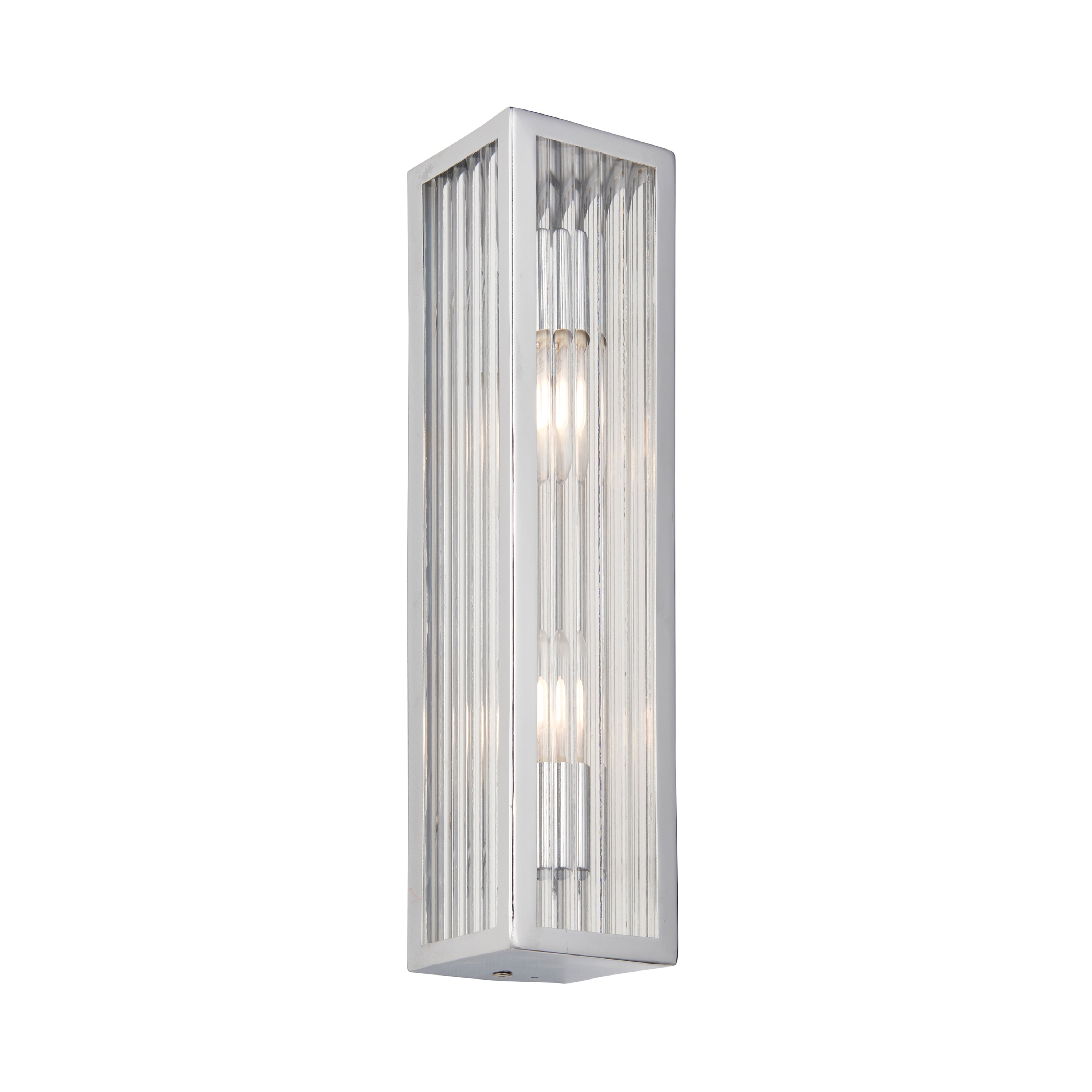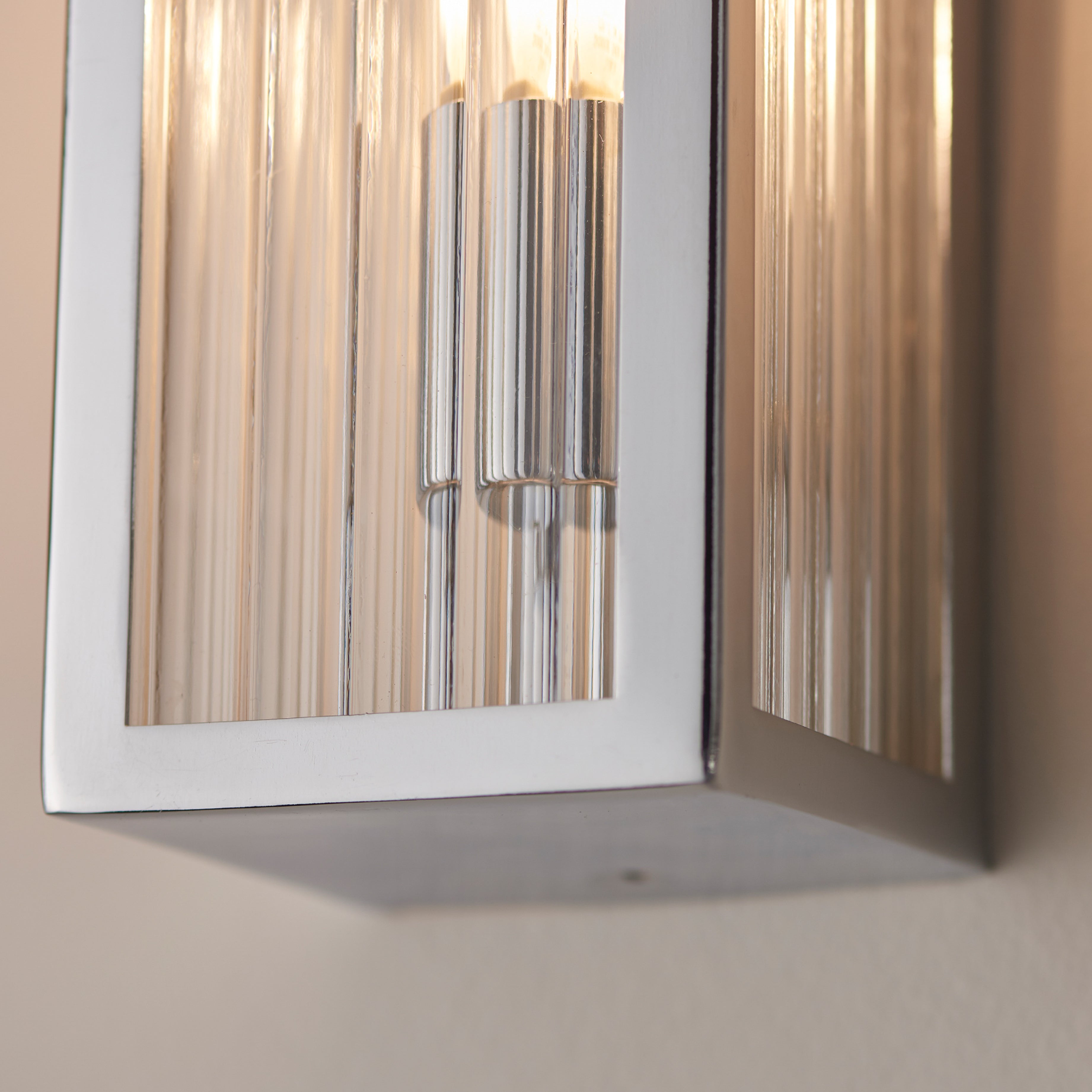 Newham Ribbed Double Bathroom Wall Light | Chrome/Clear