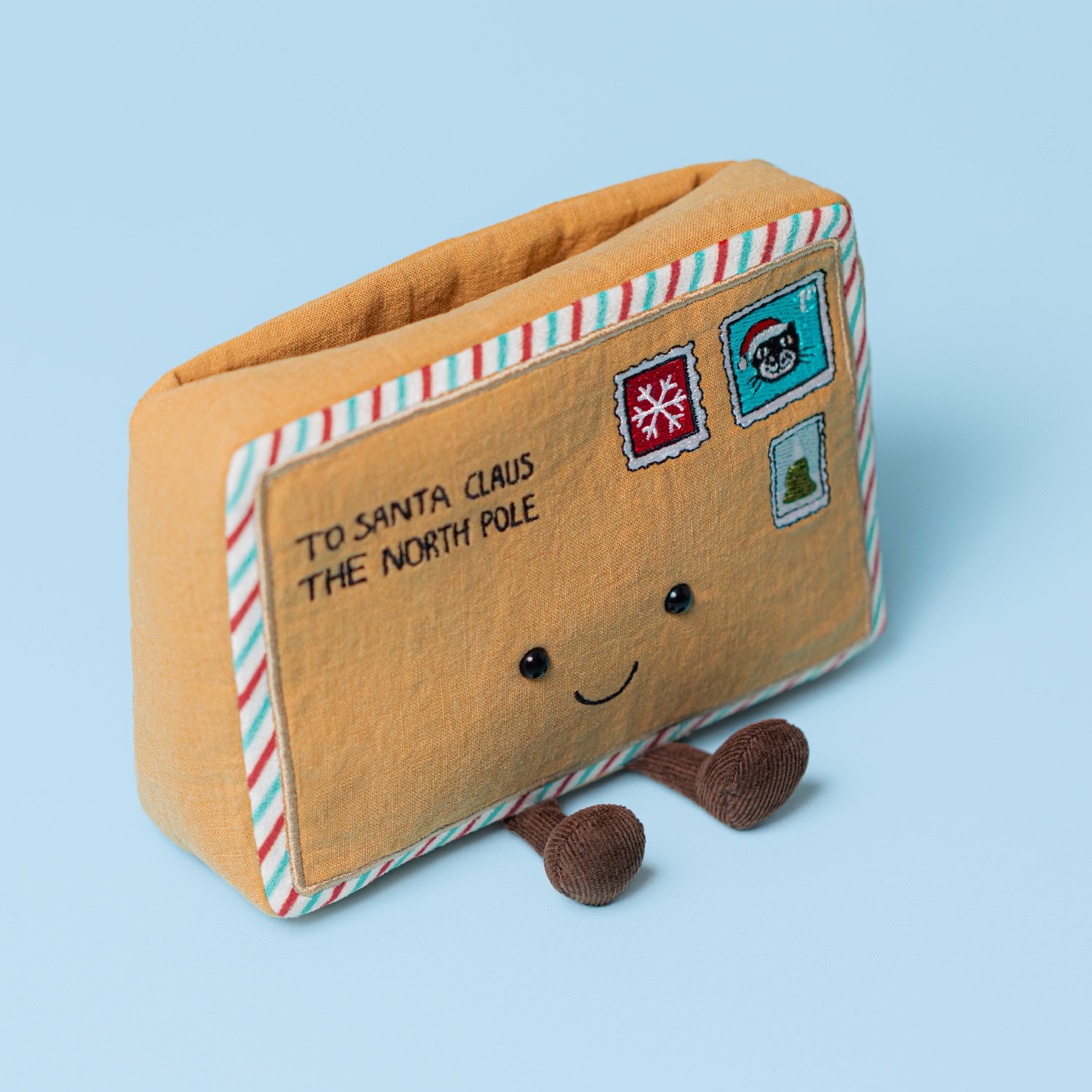 Jellycat’s Letter to Santa of the Amuseables Collection is fundamentally festive by design. Crafted from rayon coloured golden brown, their letter is addressed to Santa Claus himself. Featuring embroidered stamps, friendly beaded eyes and a forever stitched smile to match - Jellycat’s letter is almost too cute to send.