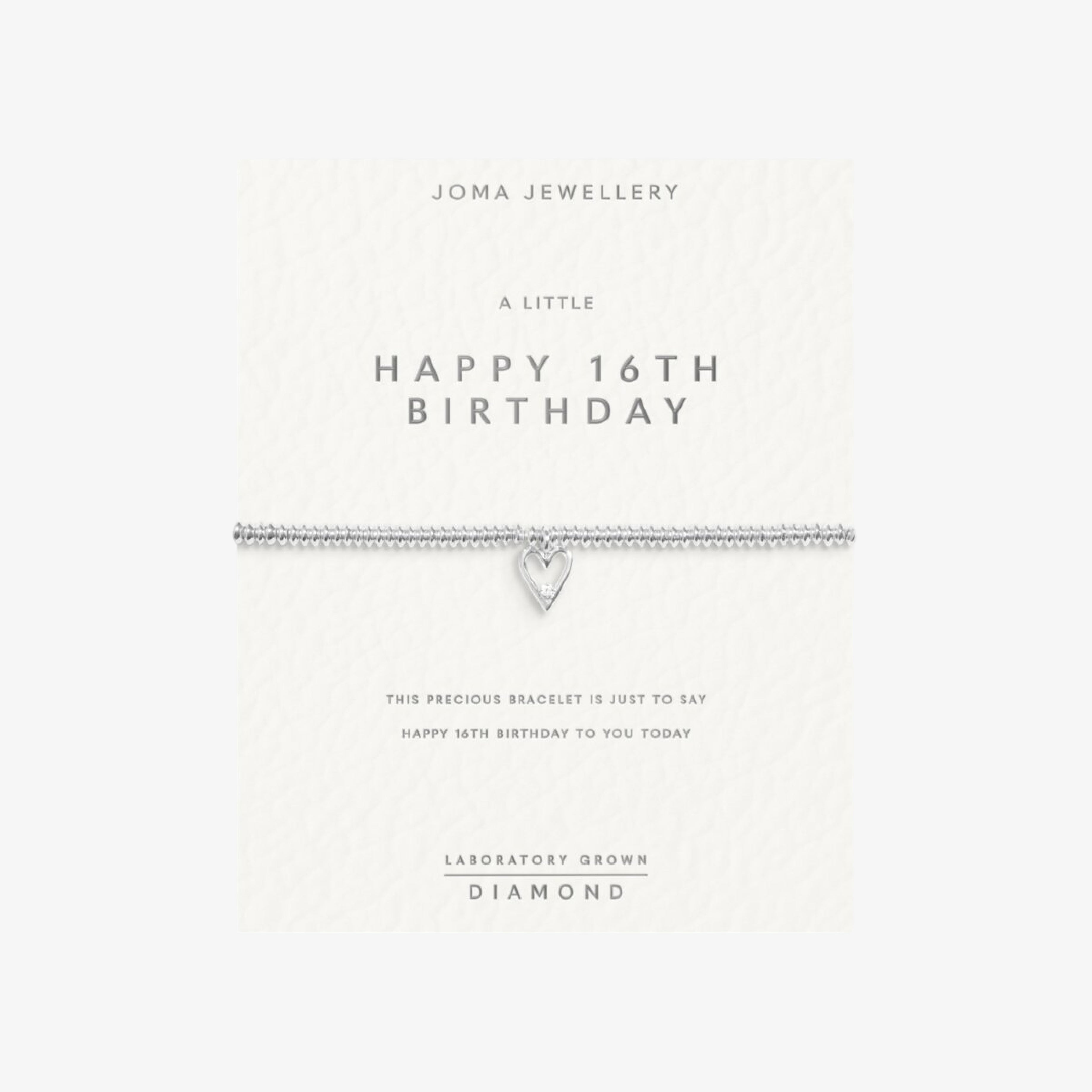 Laboratory Grown Diamond A Little 'Happy 16th Birthday' Bracelet | Silver Plated