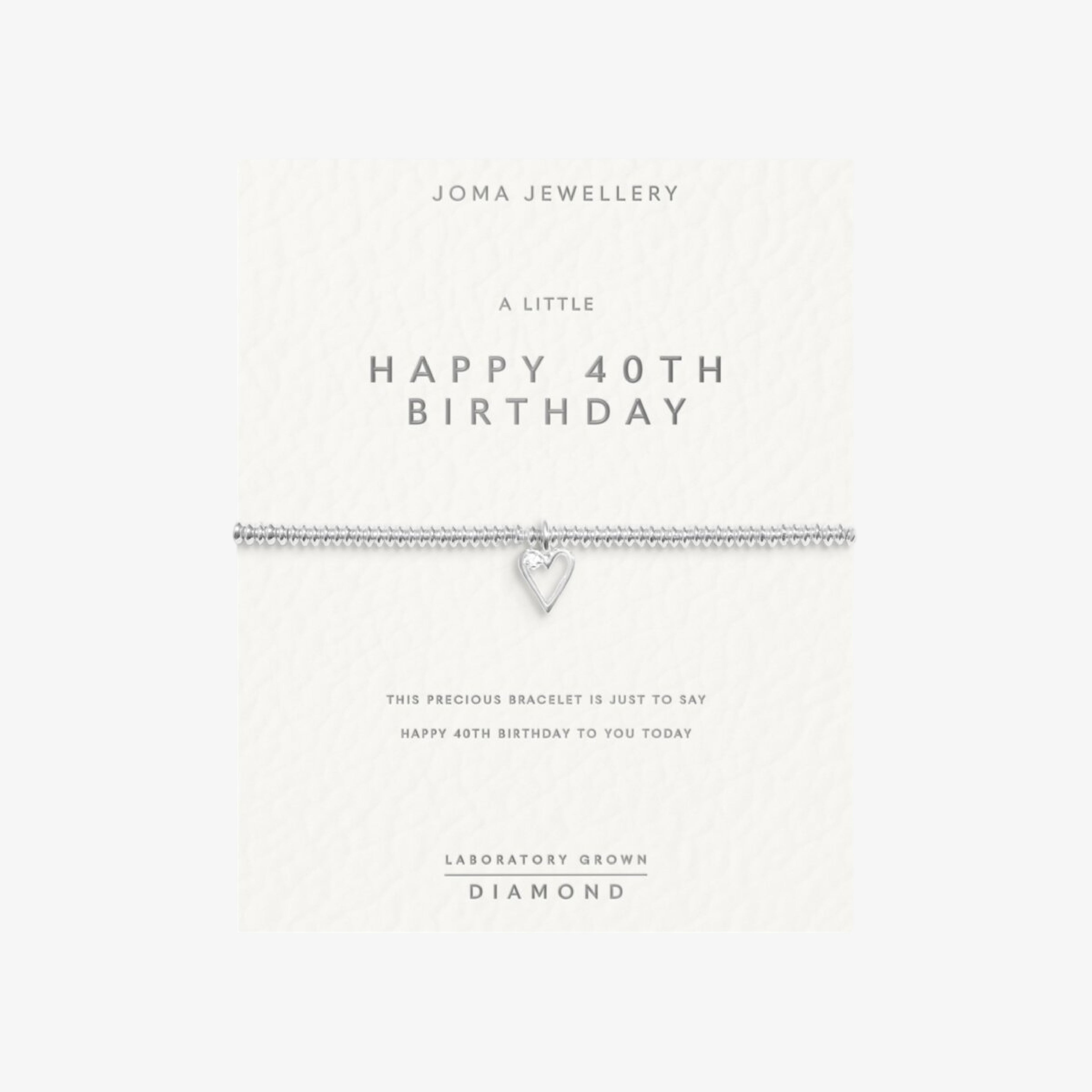 Laboratory Grown Diamond A Little 'Happy 40th Birthday' Bracelet | Silver Plated