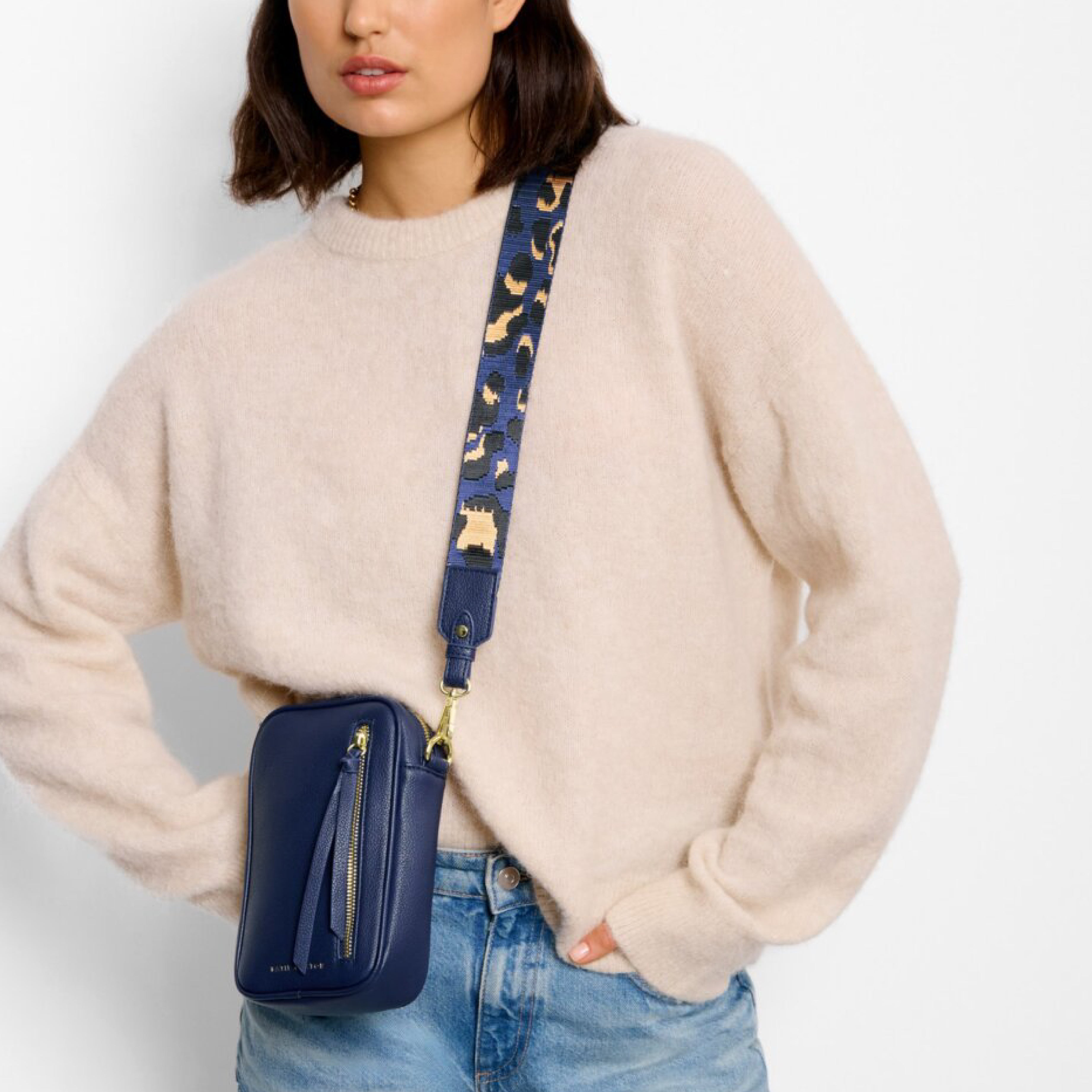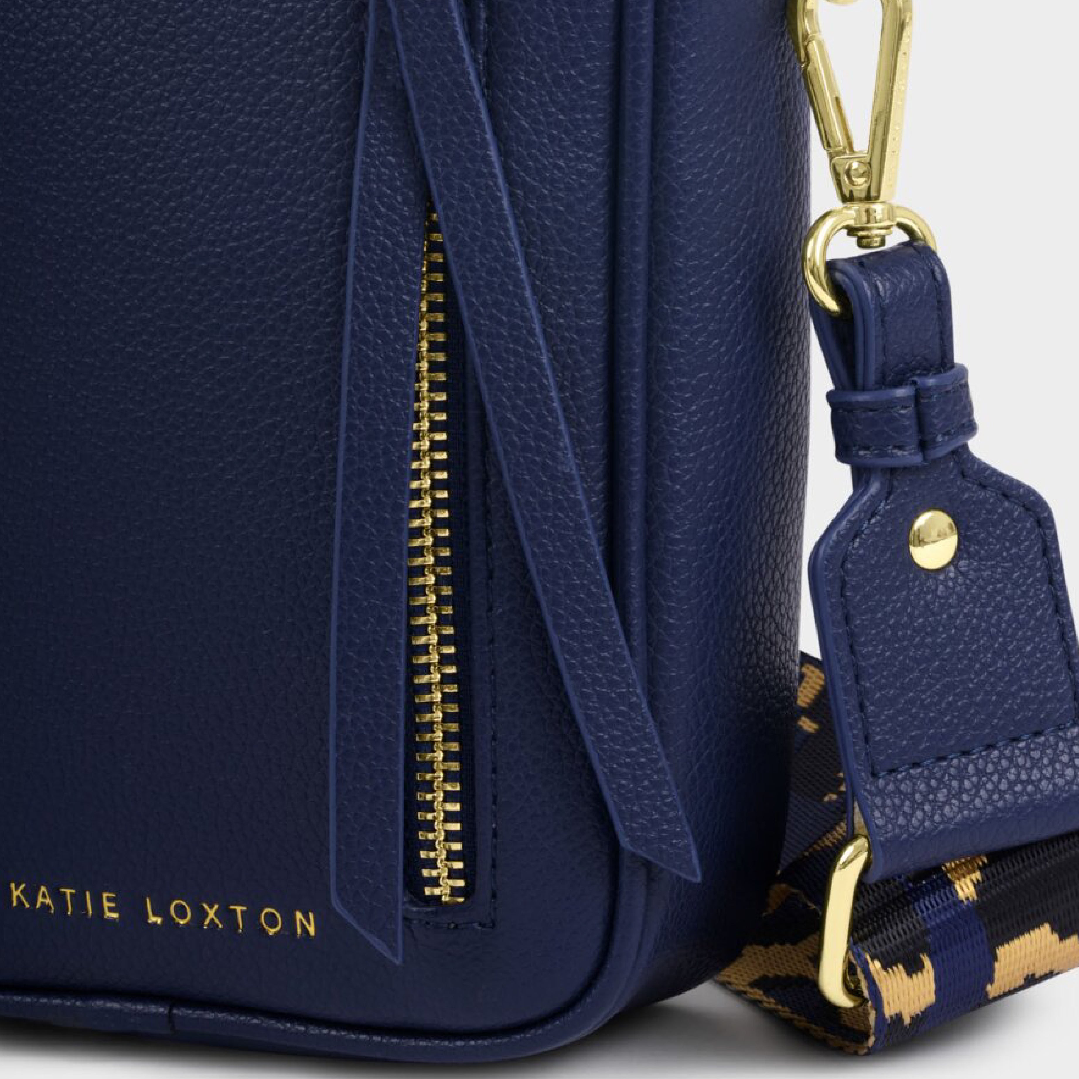 Katie Loxton’s crossbody bag of the Hallie Collection is modish in miniature. Crafted from vegan leather coloured midnight blue, it features a secure zipped interior lined in recycled polyester, and an additional external pocket with a chic tassel zip-pull. Complete with an adjustable and detachable strap, signature gold-tone hardware and pebble finish - Loxton’s small crossbody bag marries form and function.