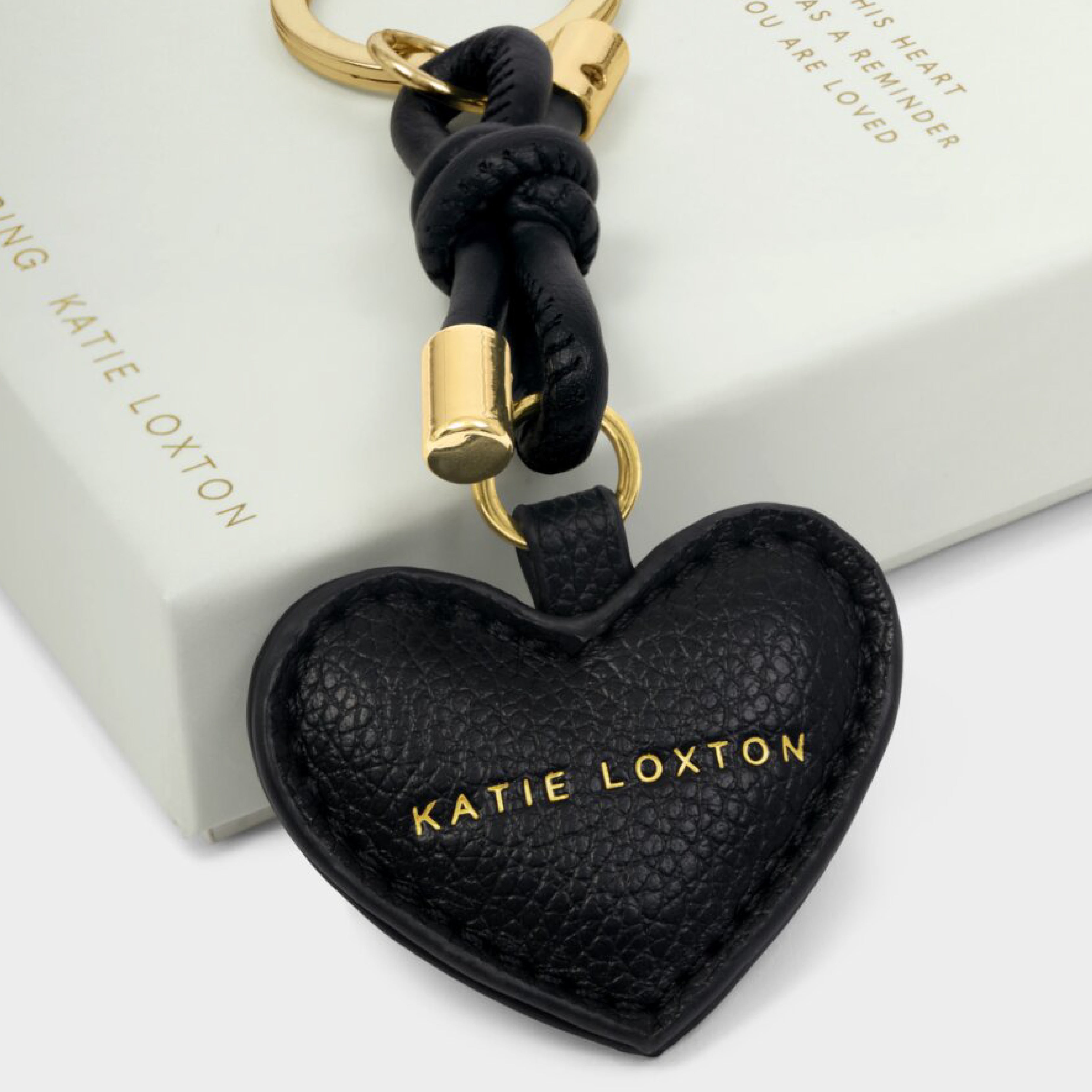 Katie Loxton’s keyring is crafted to be cherished. Made from plush vegan leather coloured black, its puffed heart features stunning gold foil details and matching gold-tone hardware. Housed in a chic box and presented in a beautiful ribbon tied bag for good measure - Loxton’s keyring is giftable by design.