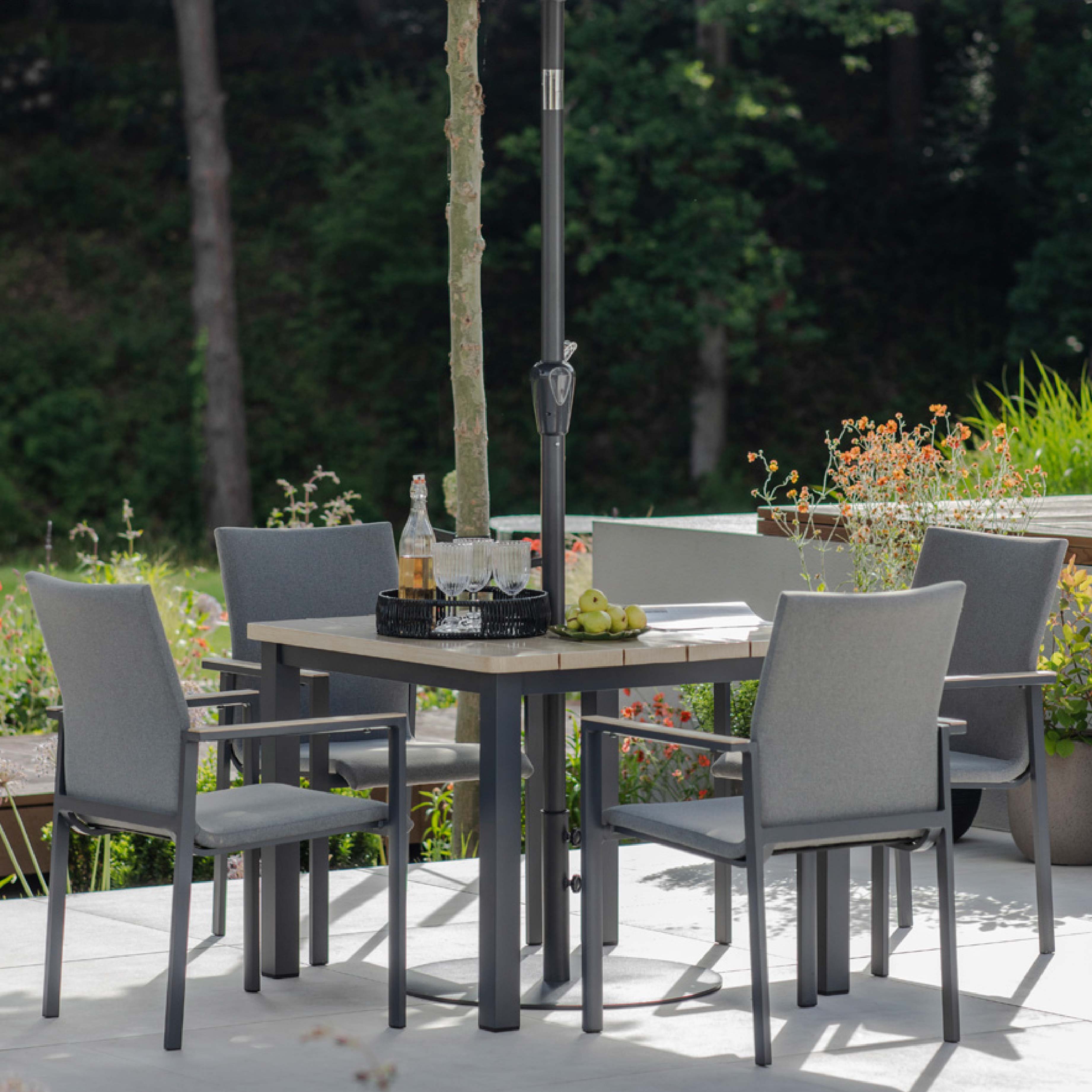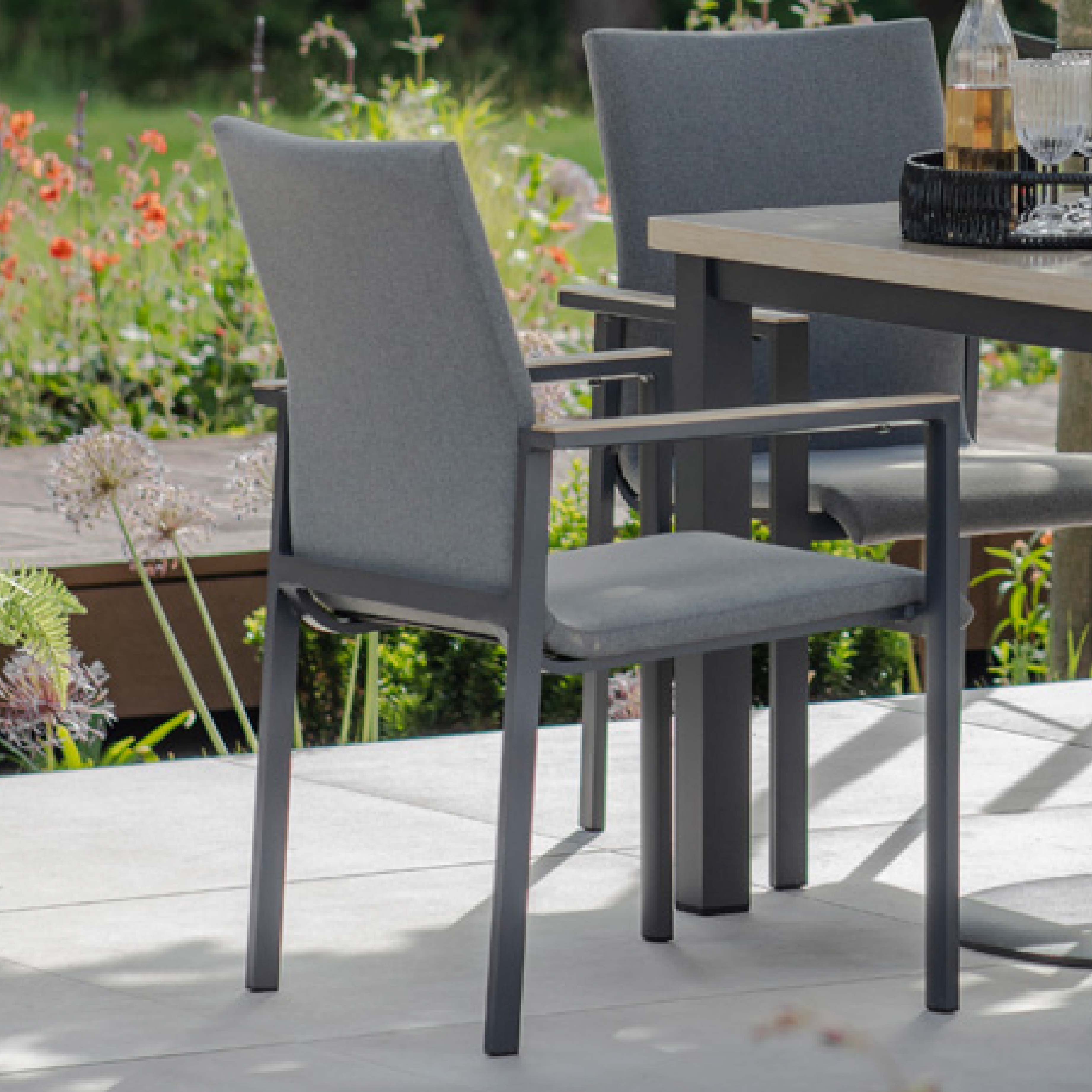 LG’s outdoor armchairs of the Venice Collection are crafted from premium aluminium coloured grey. Chic, stackable and and season-proof for good measure - LG’s armchair set defines alfresco living.