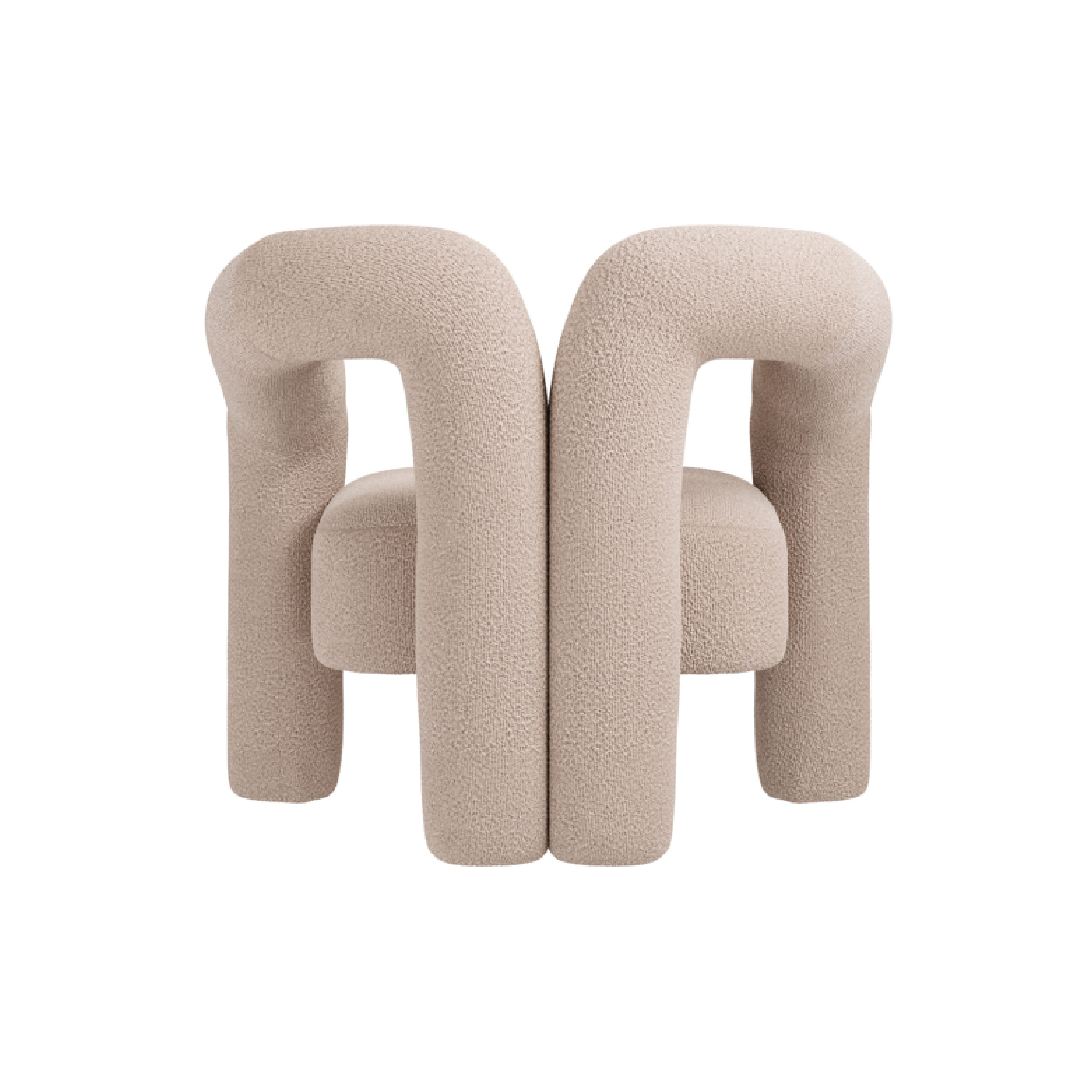 Delve into the luxurious comfort of the Nordic-inspired Freyja chair, boasting arched armrests and artistic flair. Upholstered in premium boucle fabric and adorned in a versatile white hue, this ultra-soft chair is comfortable and sophisticated.