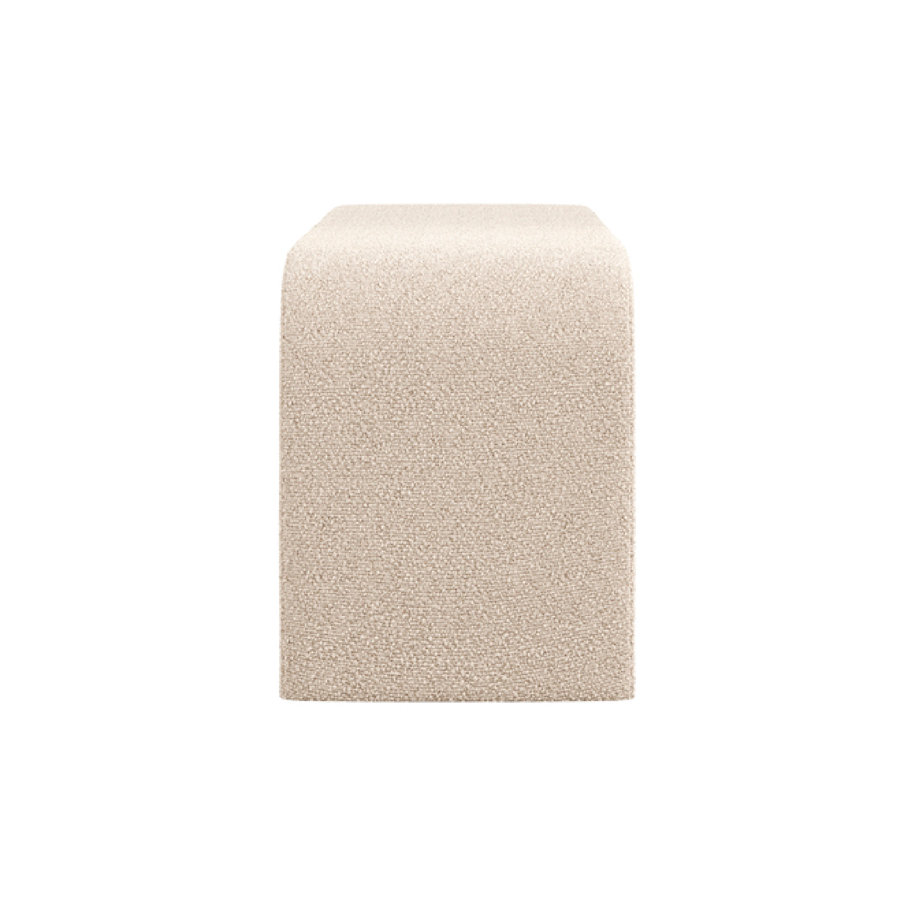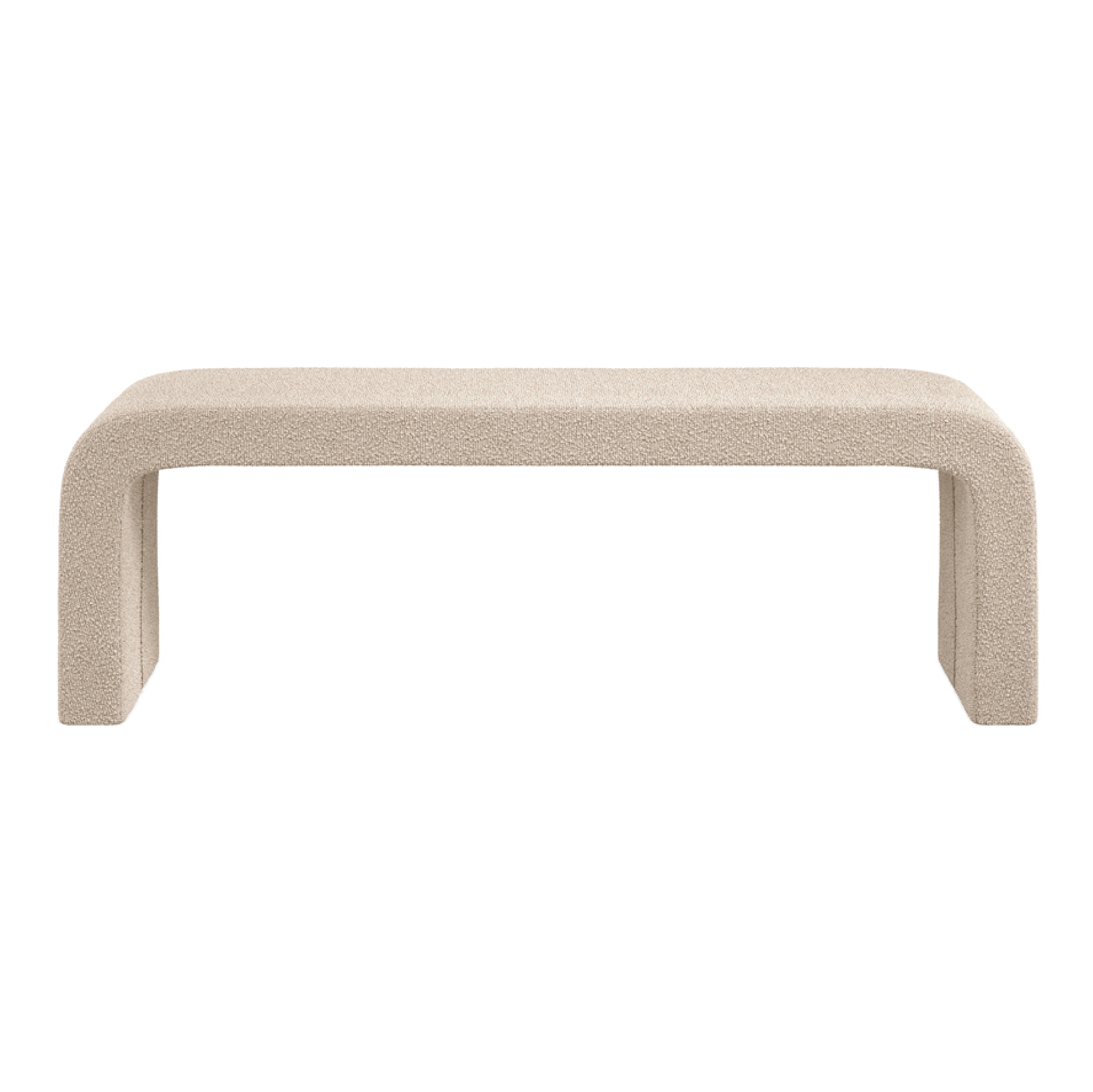 The Ren Boucle Bench in Buff features rounded corners and plush boucle material, making it a stylish addition to any contemporary interior. This chic bench combines modern design with luxurious comfort, perfect for enhancing your living space.