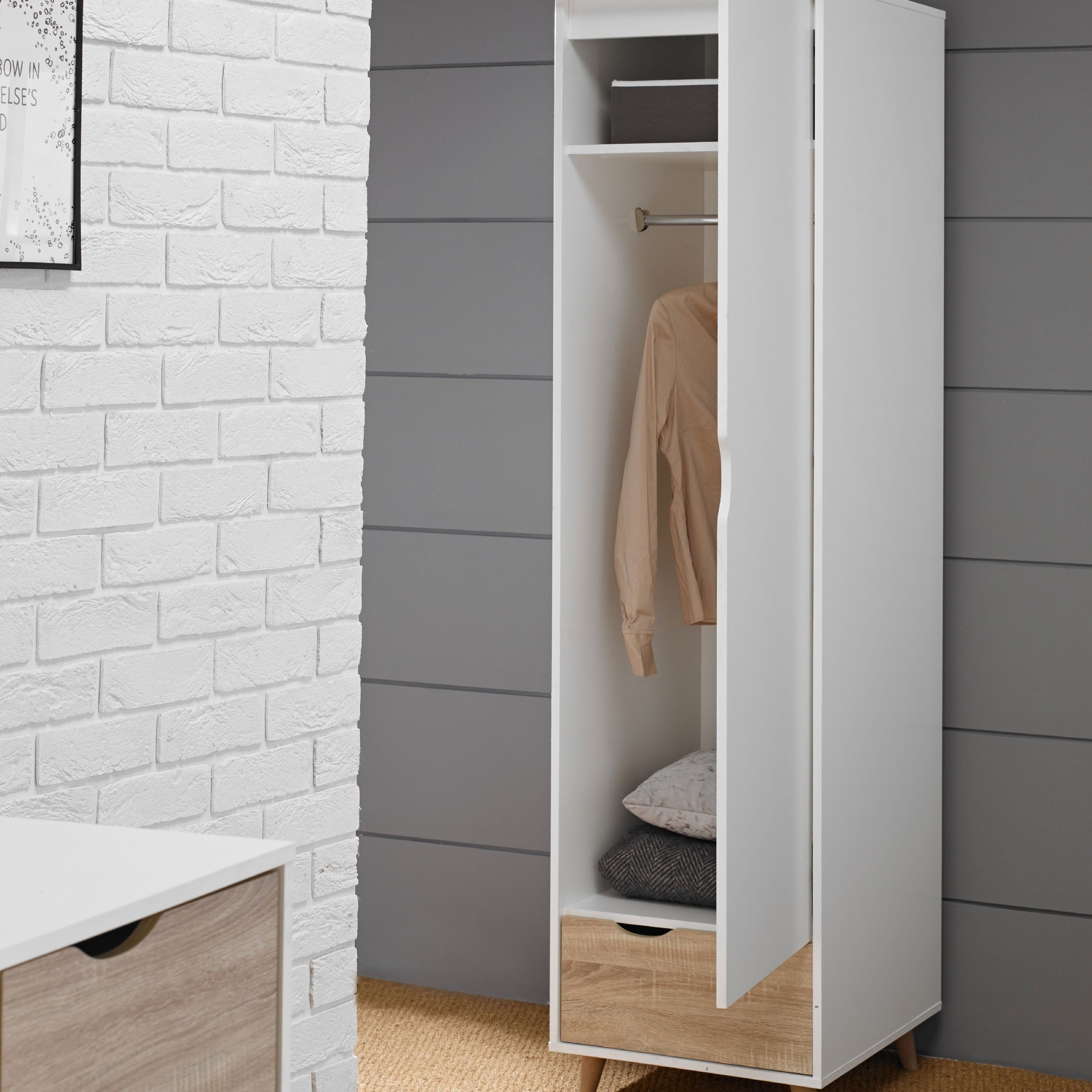 With a matt white finish and delicate legs, LPD Home’s Stockholm wardrobe offers a smart look at an attractive price point. It features a single-door cupboard and drawer at the bottom, with integral handles for easy use. The oak front detail adds a touch of timeless elegance, perfectly coordinating with the rest of the collection.
