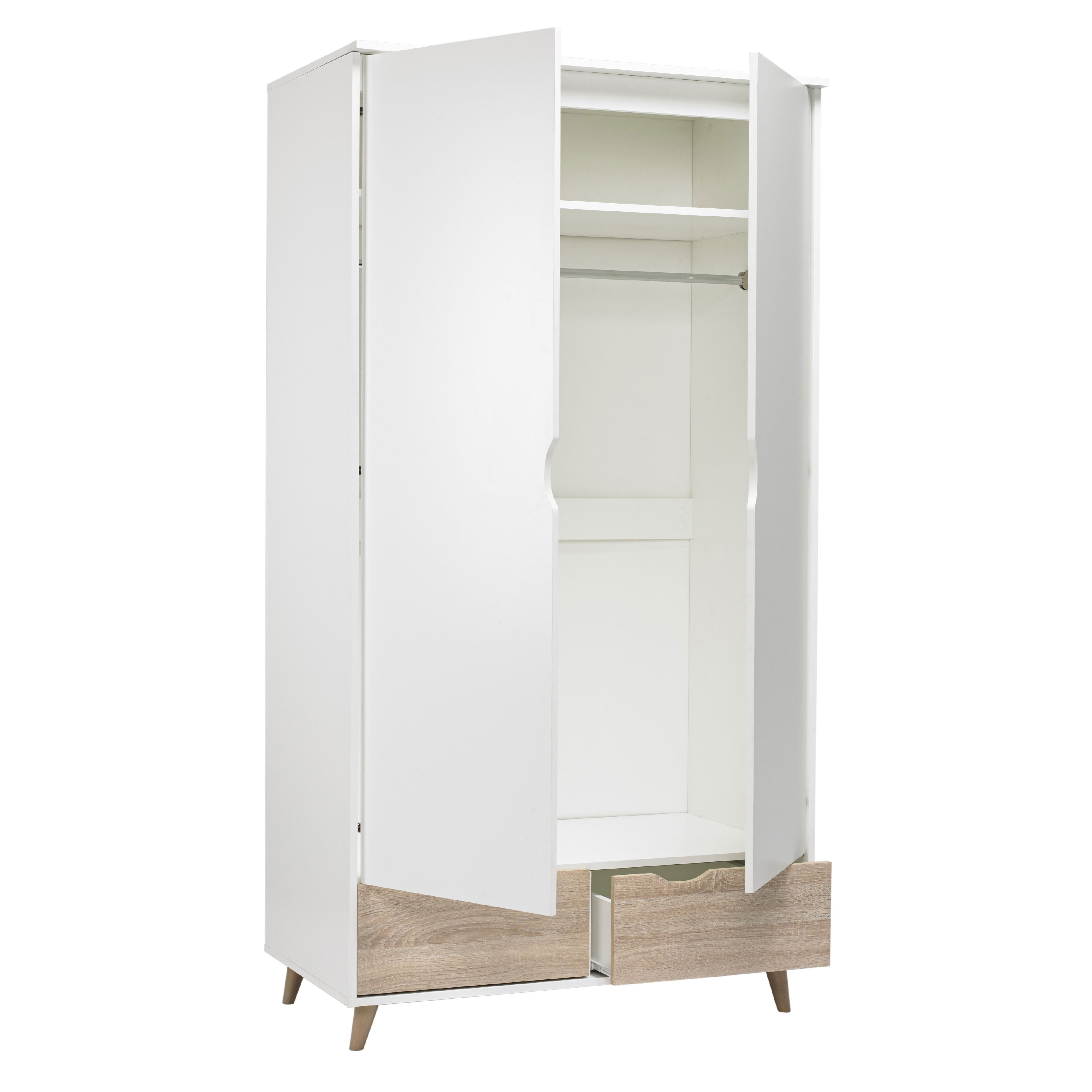 With a matt white finish and delicate legs, LPD Home’s Stockholm wardrobe offers a smart look at an attractive price point. It features a double-door cupboard and two drawers at the bottom, with integral handles for easy use. The oak front detail adds a touch of timeless elegance, perfectly coordinating with the rest of the collection.