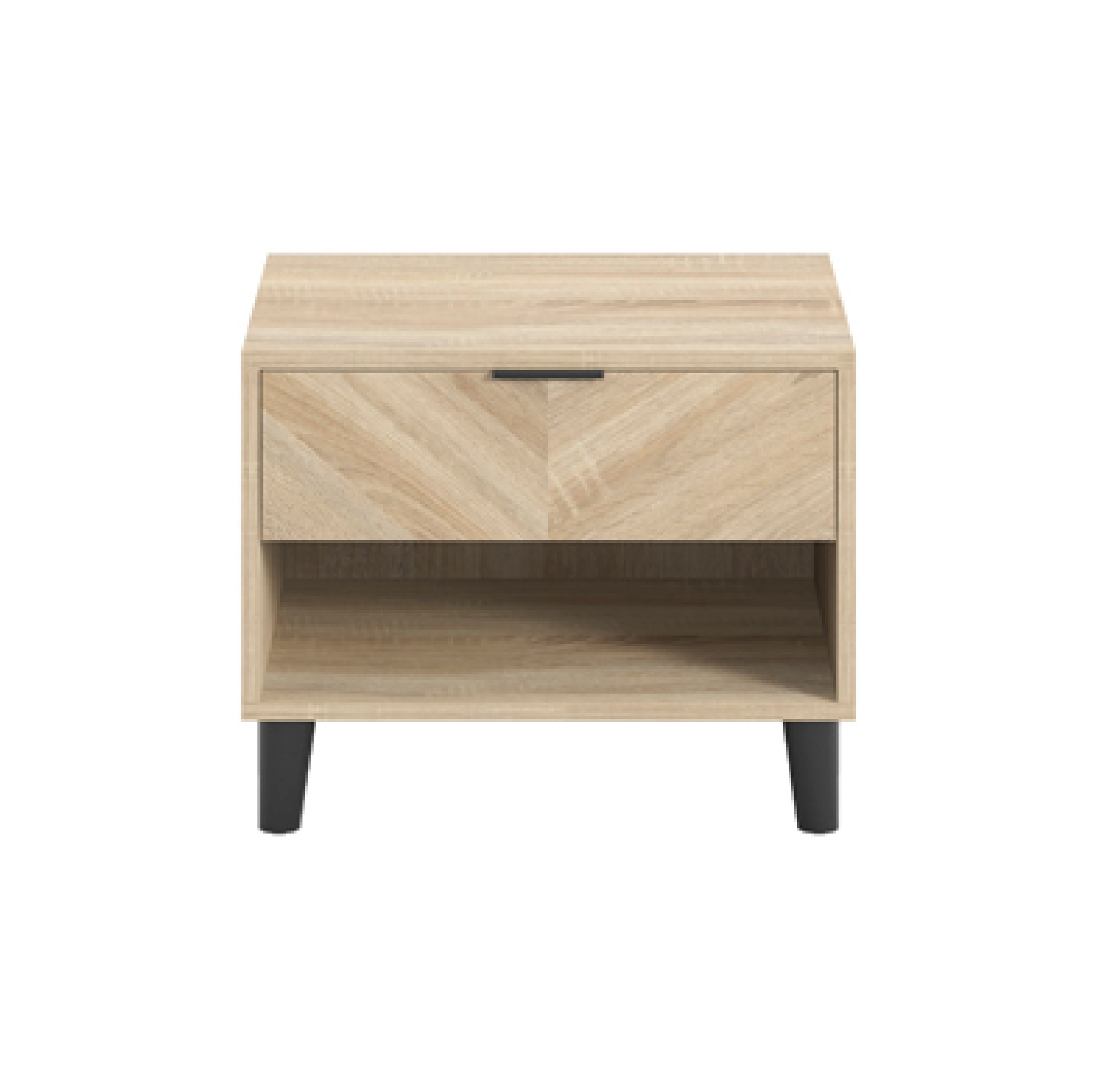 Stockholm Chevron 1 Drawer Bedside Cabinet | Natural/Black