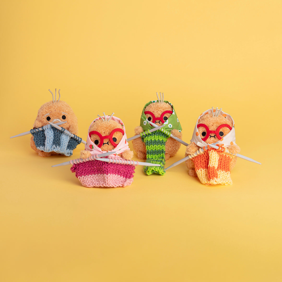 Meet Noodoll’s Grandma Ricepud - now dressed in a sweet strawberry printed headscarf. Crafted from super soft polyester, wearing brilliant red felt glasses and donning strands of grey hair on their head - Noodoll’s golden oldie is built just for hugs.