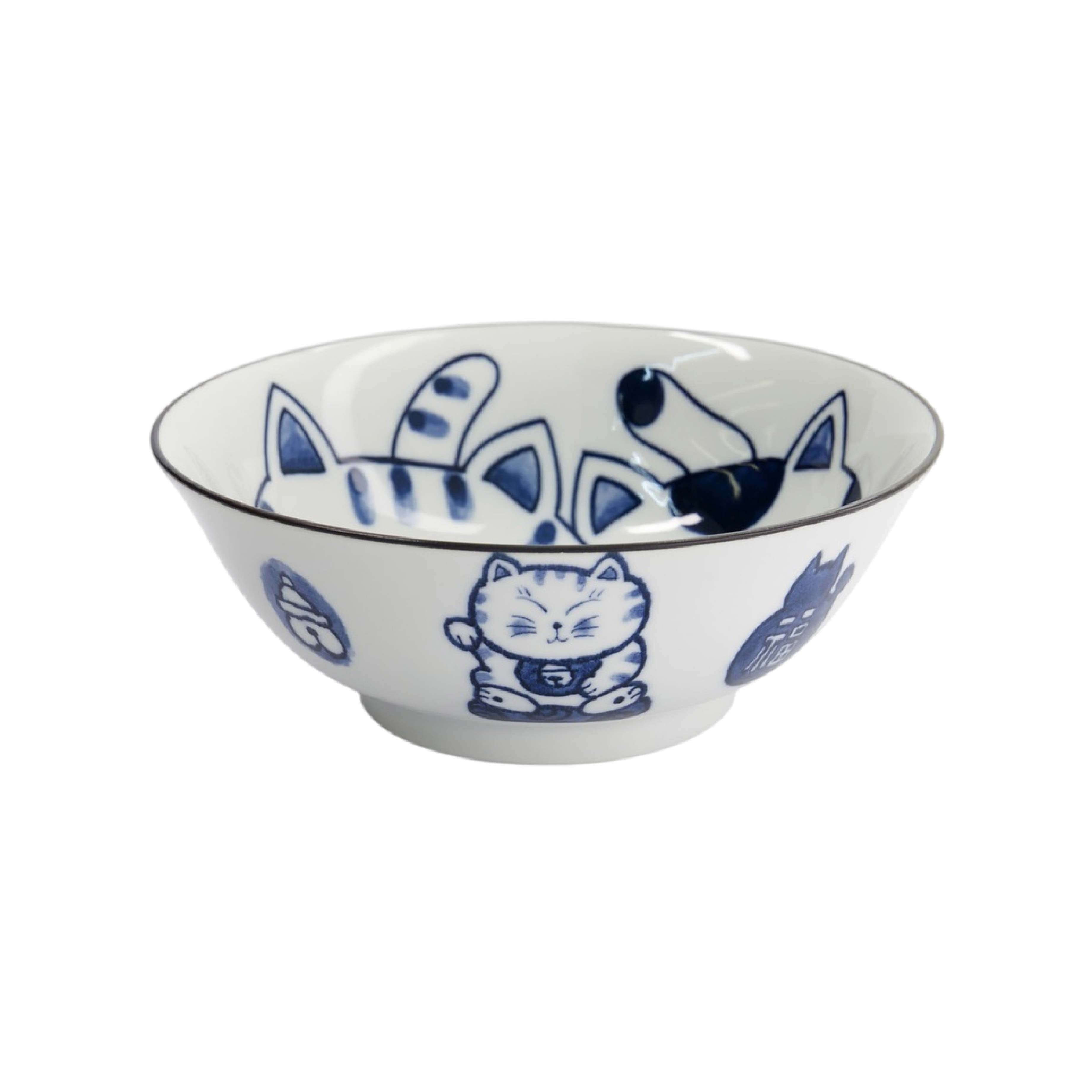 Kawaii Cat Couple Ramen Bowl | Blue & White | 20cm