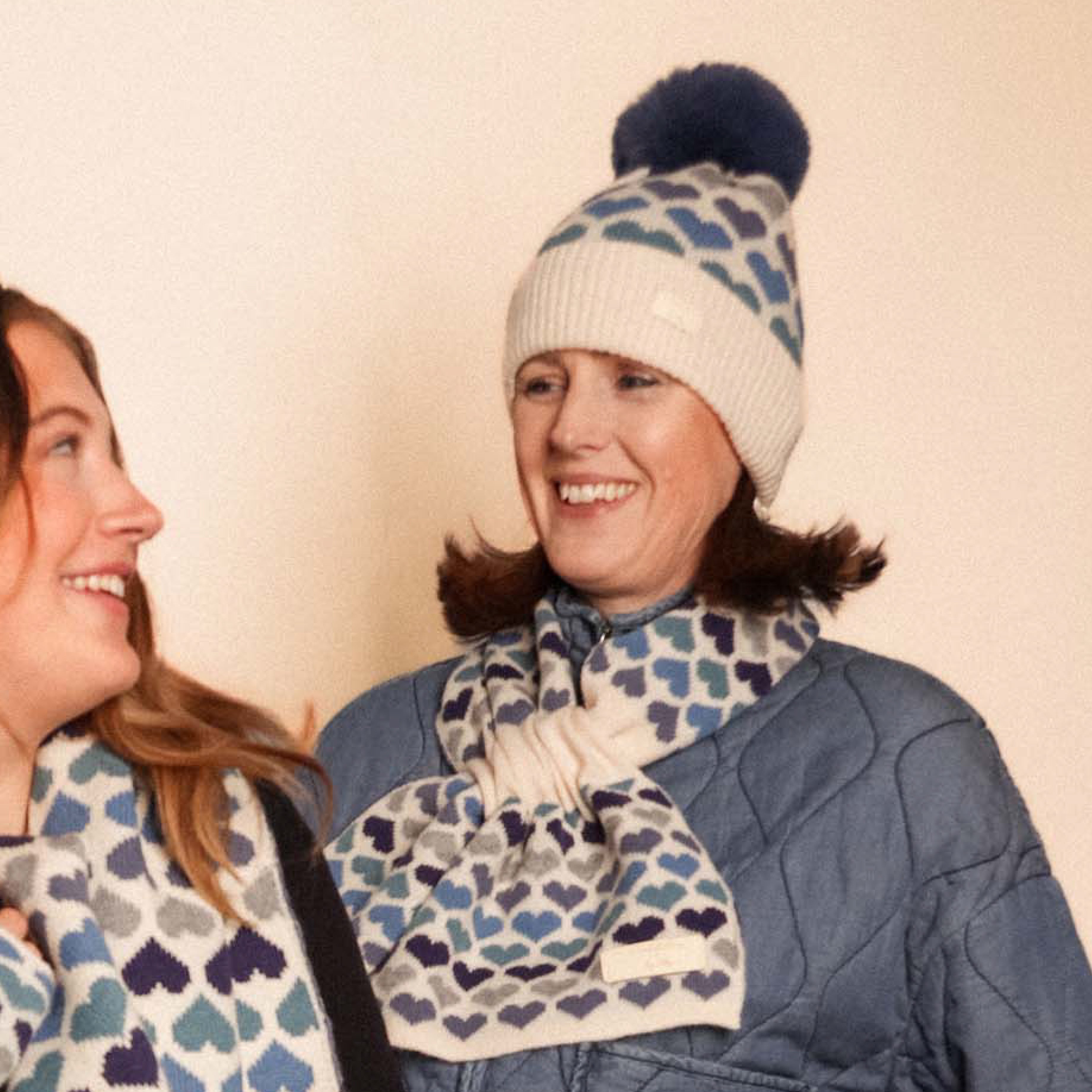 Snug meets stylish in Zelly’s chic winter hat. Crafted from a plush chinlon blend coloured cream with blue hearts, it features a cosy knit texture and comes complete with an oversized pom pom on its top. Whether sporting for morning runs or afternoon strolls - Zelly’s winter hat is the go-to accessory come colder months.